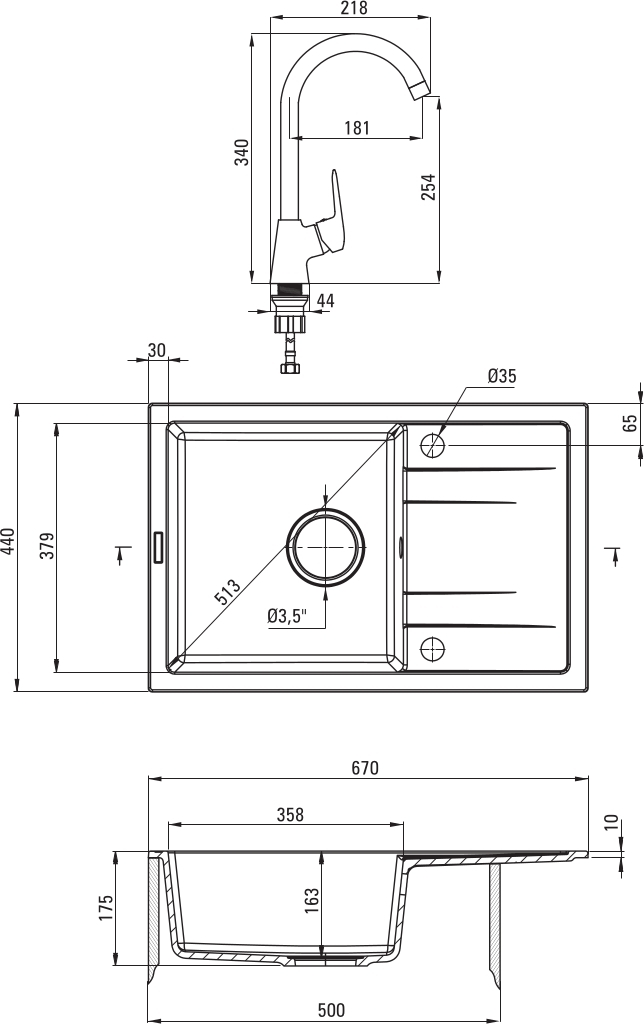 | Комплекты | мойка и смеситель |