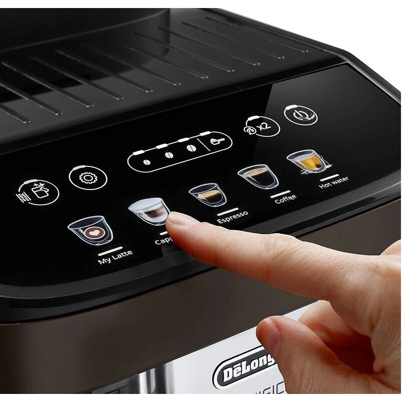 DeLonghi ECAM 29.3.61.BW – это автоматическая кофемашина серии Magnifica S, предназначенная для ценителей насыщенного, ароматного кофе прямо дома. Она сочетает в себе высокое качество приготовления, интуитивное управление и стильный дизайн в белом корпусе с черными деталями, что прекрасно смотрится на кухонной столешнице. Эта модель оборудована встроенной кофемолкой с регулируемой степенью помола, которая обеспечивает свежий помол зерен перед каждым приготовлением – ключевое условие полноценного раскрытия аромата и вкуса. Вы легко можете готовить эспрессо, лунго, американо, кофе с молоком, капучино и латте макиато, выбирая любимый напиток на интуитивном дисплее.