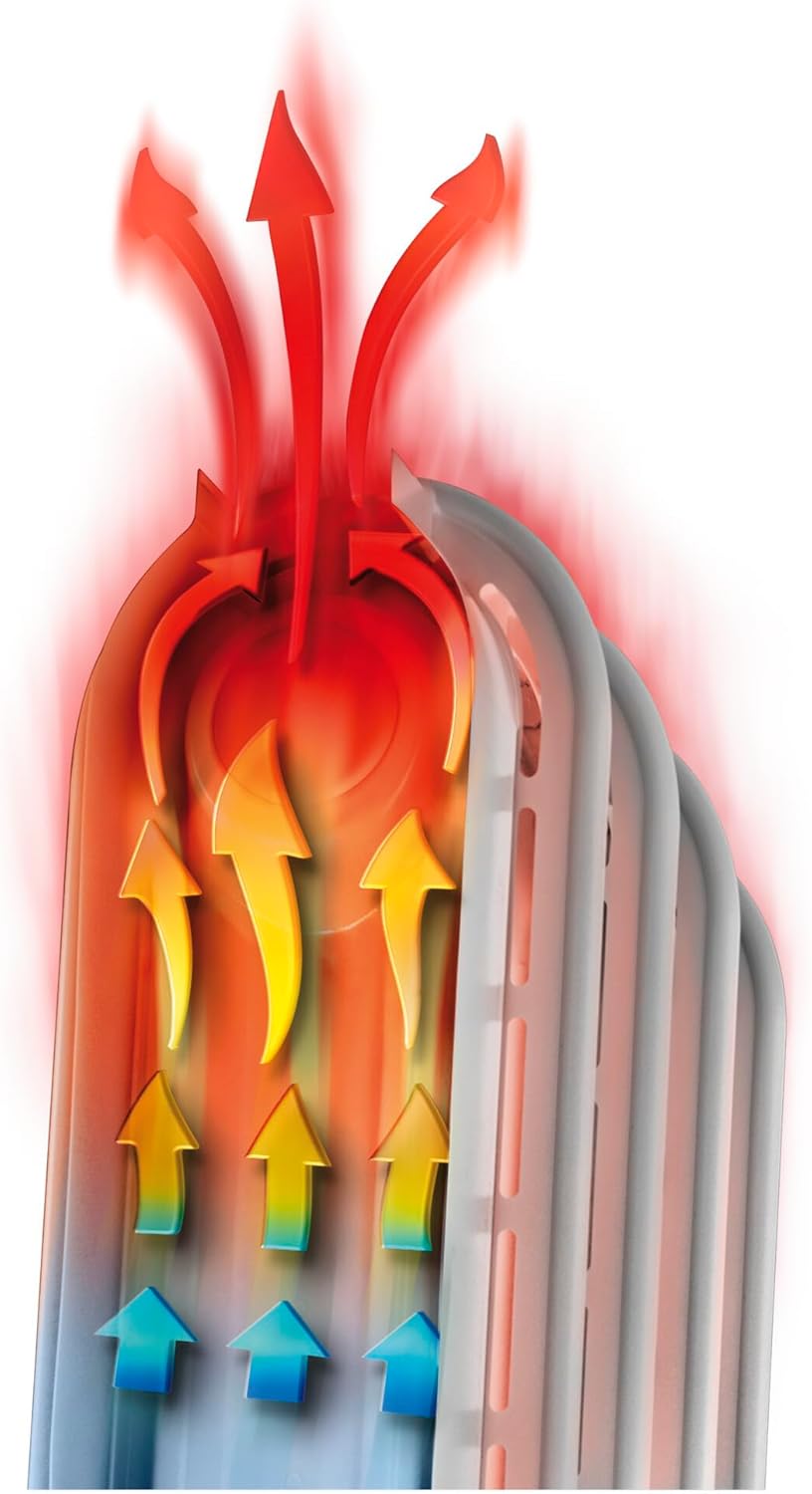Электрический масляный радиатор: масляный радиатор с 9 элементами, мощностью 1800 Вт, бесшумно и равномерно нагревает все помещение: его 9 элементов обеспечивают большую поверхность нагрева и отличную циркуляцию воздуха для быстрого нагрева.