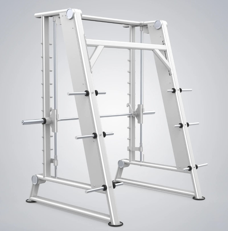 Машина Смита является популярной среди пользователей благодаря инновационному, стильному и безопасному дизайну с нагрузкой с помощью дисков. Вертикальное движение штанги Смита обеспечивает стабильную траекторию, помогая пользователям выполнять правильные приседания. Несколько позиций фиксации позволяют остановить тренировку, повернув штангу Смита в любой момент во время выполнения упражнения, а мягкая основа внизу защищает машину от повреждений, вызванных внезапным падением штанги.