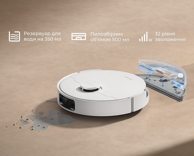 Упростите уборку с помощью многофункциональной базы сбора мусора, которая оснащена автоматической системой удаления пыли для удобного и простого опорожнения и позволяет полностью автономно убирать Ваш дом на протяжении 150 дней. Отрегулируйте уровень влажности с помощью резервуара для чистой воды объемом 350 мл и 32 настроек потока, чтобы справиться с влажными и сухими загрязнениям, как никогда раньше.