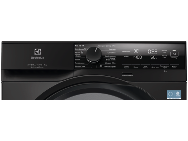 Освежите паром и надевайте снова, экономя до 96 процентов воды. Программа SteamRefresh на 25 мин. подходит для деликатных вещей и требует меньше воды, чем при обычной стирке. Для большей свежести можно добавить ароматизатор Electrolux Steam Fragrance. UniversalDose активирует капсулы PODS на 60 процентов быстрее. Уникальный выдвижной контейнер UniversalDose подходит для всех стиральных средств, а капсулы PODS в нем растворяются на 60% быстрее. Его легко выдвигать и разбирать, а вихревое движение воды поддерживает чистоту внутри. Средство для стирки остается до начала цикла, что уменьшает его чрезмерное использование.
