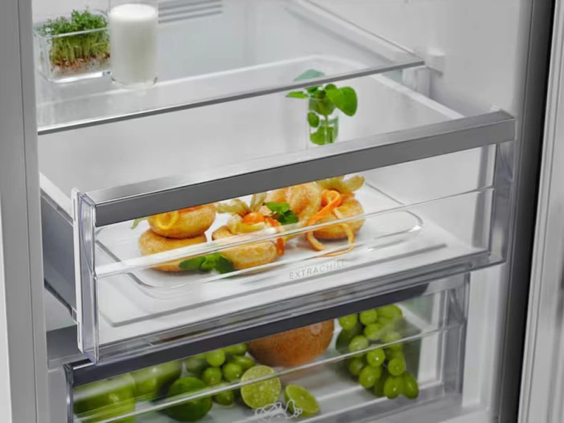 Умное двойное охлаждение TwinTech No Frost оградит продукты от потери влаги. Раздельное охлаждение холодильной и морозильной камер превосходит стандартные системы No Frost. Забудьте о леде в морозильной камере! С TwinTech No Frost продукты в холодильной камере будут усыхать на 60 процентов меньше. Сохраните качество, вкус и свежесть мясного ассорти и сыров в выдвижном ящике Extra Chill. В ящике поддерживается более низкая температура, чем в остальной части холодильника, благодаря активной циркуляции холодного воздуха.