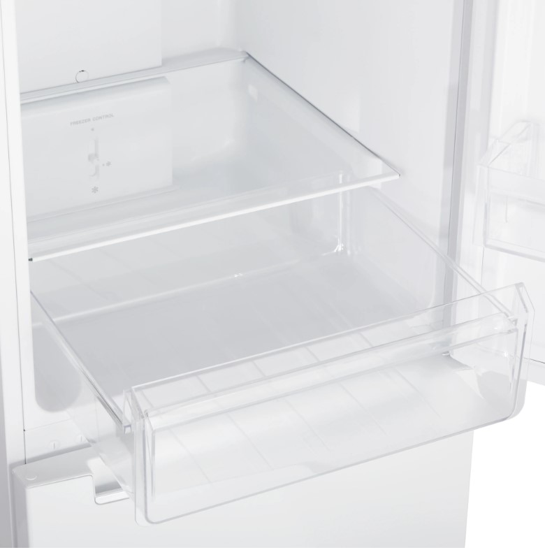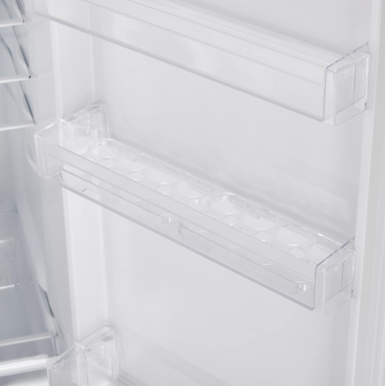 ELEYUS HRNW2180E55 WH – холодильник с системой охлаждения No Frost, который не нужно размораживать. Ширина позволяет ему поместиться там, где стандартному прибору не хватает места. Внутри 237 л полезного объема, чтобы все продукты всегда были под рукой. Технология охлаждения No Frost. Минимизирует образование льда и инея, чтобы отказаться от регулярной разморозки. Холодный воздух равномерно циркулирует и распределяется по всему холодильнику. В результате вы получаете – постоянное и одинаковое охлаждение продуктов и быструю заморозку без льда или инея. Простое и интуитивное управление позволяет быстро настроить работу. Выбирайте температуру холодильного отделения поворотным переключателем, а слайдером регулируйте уровень свежести в морозильной камере. Больше места для хранения яиц. Недостаточно одного лотка для яиц? Пользуйтесь двумя подставками для удобного и безопасного хранения 16 яиц. Перевешивание дверцы. Никаких ограничений при планировке кухни вашей мечты. Быстро и легко меняйте направление открывания дверцы благодаря системе перевешивания. Открывайте холодильник справа или слева, чтобы пользоваться им максимально удобно. Если напряжение исчезло или прибор отключен от сети, холодильник поддерживает установленную температуру в течение 11,5 часов.