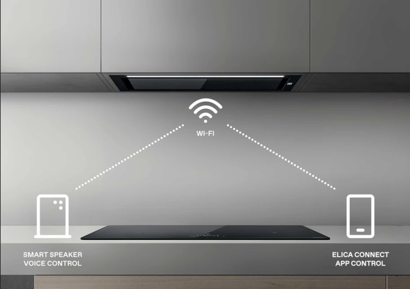 Благодаря интеллектуальным датчикам, вытяжка автоматически регулирует мощность всасывания в зависимости от интенсивности приготовления пищи, обеспечивая оптимальную производительность и энергоэффективность. Дополнительные функции, такие как управление через приложение Elica Connect и голосовые помощники, делают использование устройства максимально удобным и адаптированным к современным требованиям.