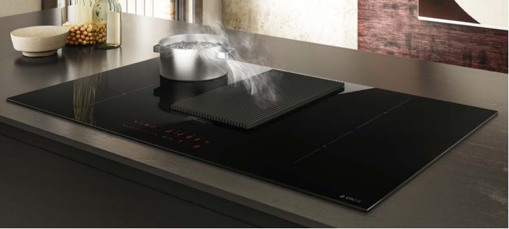 NikolaTesla Prime — индукционная варочная панель Elica со встроенной системой вытяжки, уникальная благодаря поиску сбалансированной эстетики и вниманию к функциональным деталям.