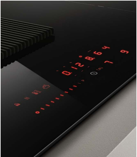 В NikolaTesla Prime при активации функции AUTOCAPTURE система аспирации автоматически настраивается в зависимости от количества используемых конфорок и установленной мощности. В передней части варочной панели расположена единая панель управления. Она управляет индукционными зонами и аспирационной системой простым прикосновением пальца.