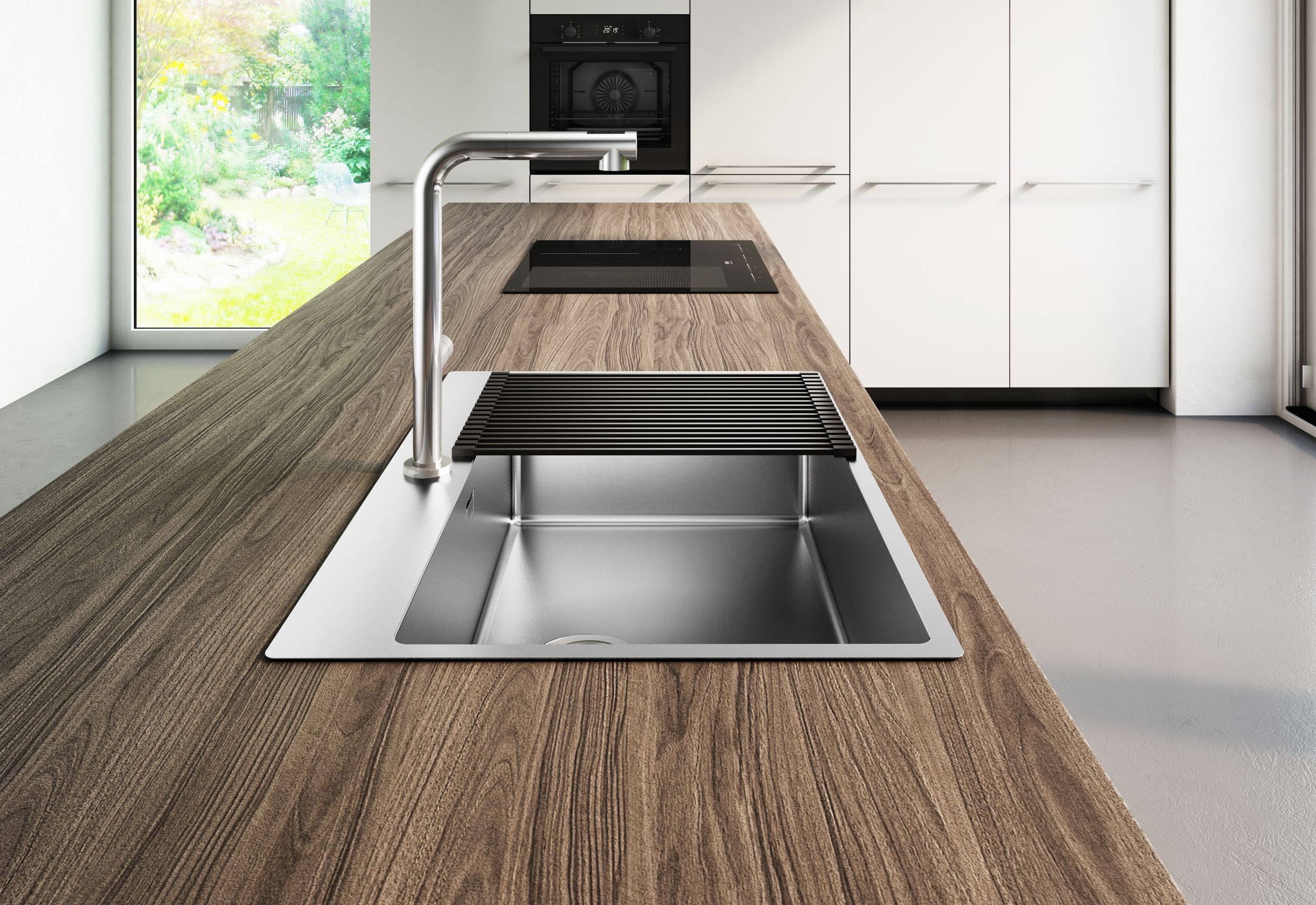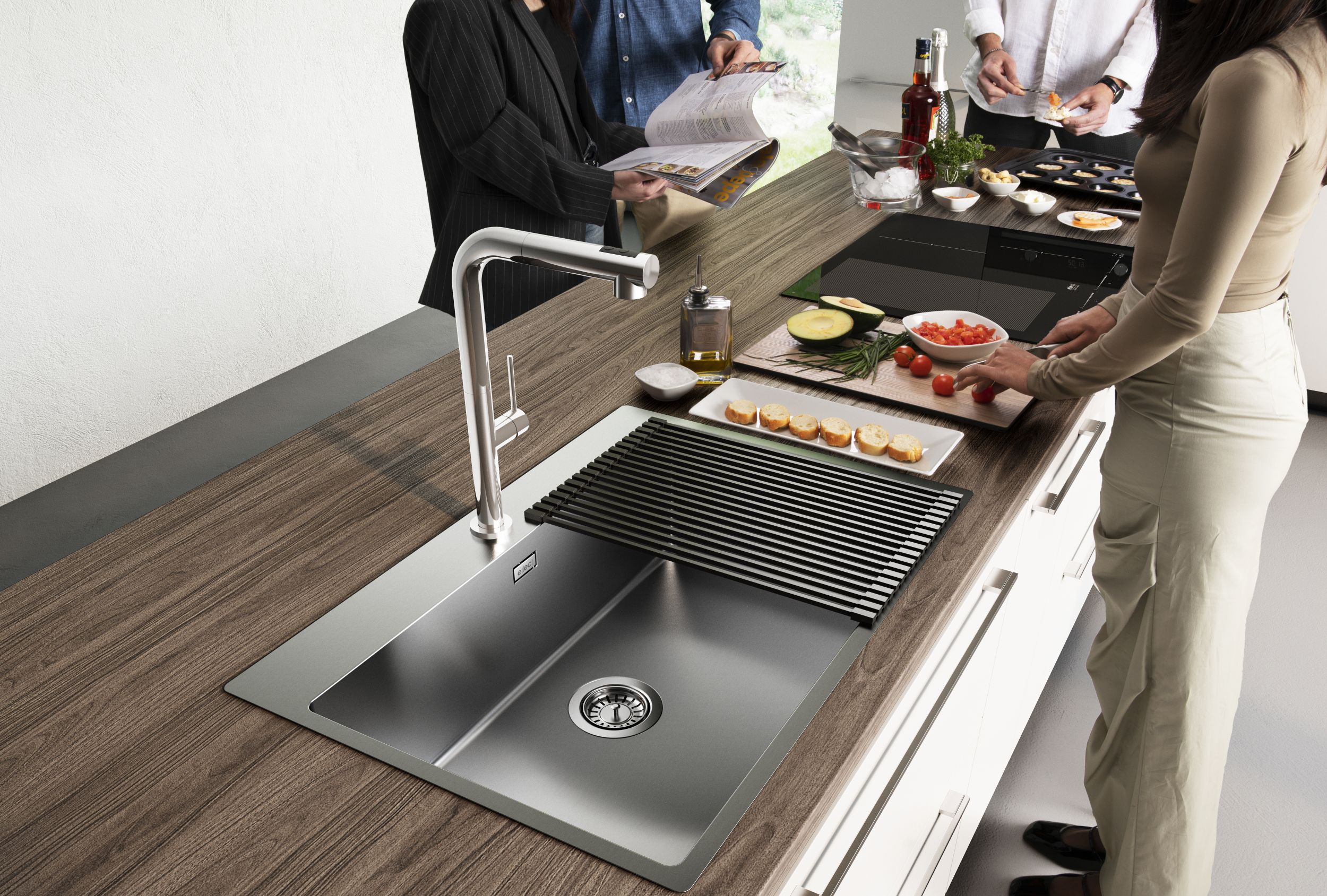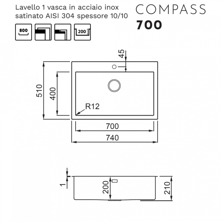 Elleci Compass 700 – большая прямоугольная кухонная мойка из нержавеющей стали. Поверхность – матовая нержавейка, обеспечивающая классический современный вид, легкость в уходе и совместимость со многими стилями кухни. По дизайну эта мойка акцентирует на функциональности: большой размер чаши позволяет комфортно работать с большими кастрюлями и сковородками, материал — нержавеющая сталь — достаточно универсален и долговечен.