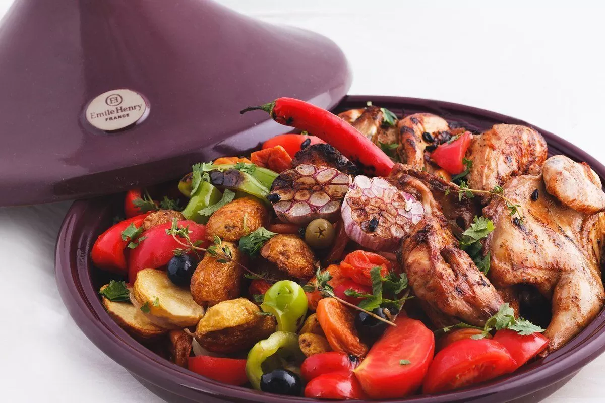 Таджин с крышкой Delight от французского производителя Emile Henry. Обладает эргономичной формой и укомплектован крышкой. Выдерживает высокую температуру. Подойдет для приготовления запеканок, блюд из мяса и овощей, также ее можно использовать для сервировки стола. Покрыт уникальной высокопрочной глазурью, устойчивой к царапинам и внешнему воздейстию, что позволяет больше не боятся повредить поверхность столовыми приборами, в том числе острым ножом или металлической лопаткой. При изготовлении изделия использовались исключительно натуральные материалы, благодаря чему прочная, огнеупорная поверхность сохраняет свой цвет, а приготовленная в ней пища — естественный вкус и аромат. Внешний вид формы разработанный таким образом, чтобы позволит наслаждаться процессом приготовления любимых блюд. Подходит для использования в духовке и микроволновой печи, а также для мытья в посудомоечной машине.