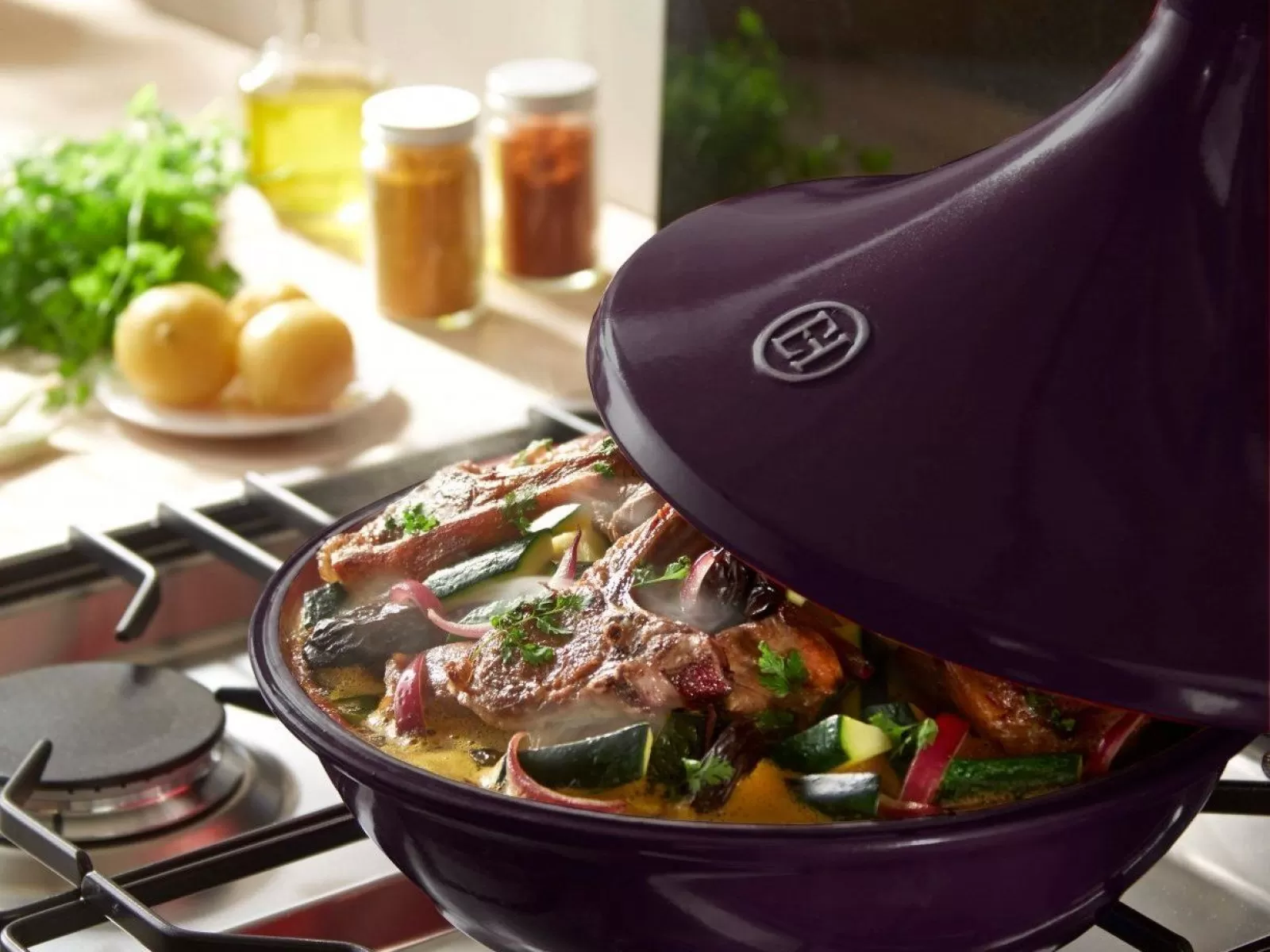 Таджин с крышкой Delight от французского производителя Emile Henry. Обладает эргономичной формой и укомплектован крышкой. Выдерживает высокую температуру. Подойдет для приготовления запеканок, блюд из мяса и овощей, также ее можно использовать для сервировки стола. Покрыт уникальной высокопрочной глазурью, устойчивой к царапинам и внешнему воздейстию, что позволяет больше не боятся повредить поверхность столовыми приборами, в том числе острым ножом или металлической лопаткой. При изготовлении изделия использовались исключительно натуральные материалы, благодаря чему прочная, огнеупорная поверхность сохраняет свой цвет, а приготовленная в ней пища — естественный вкус и аромат. Внешний вид формы разработанный таким образом, чтобы позволит наслаждаться процессом приготовления любимых блюд. Подходит для использования в духовке и микроволновой печи, а также для мытья в посудомоечной машине.