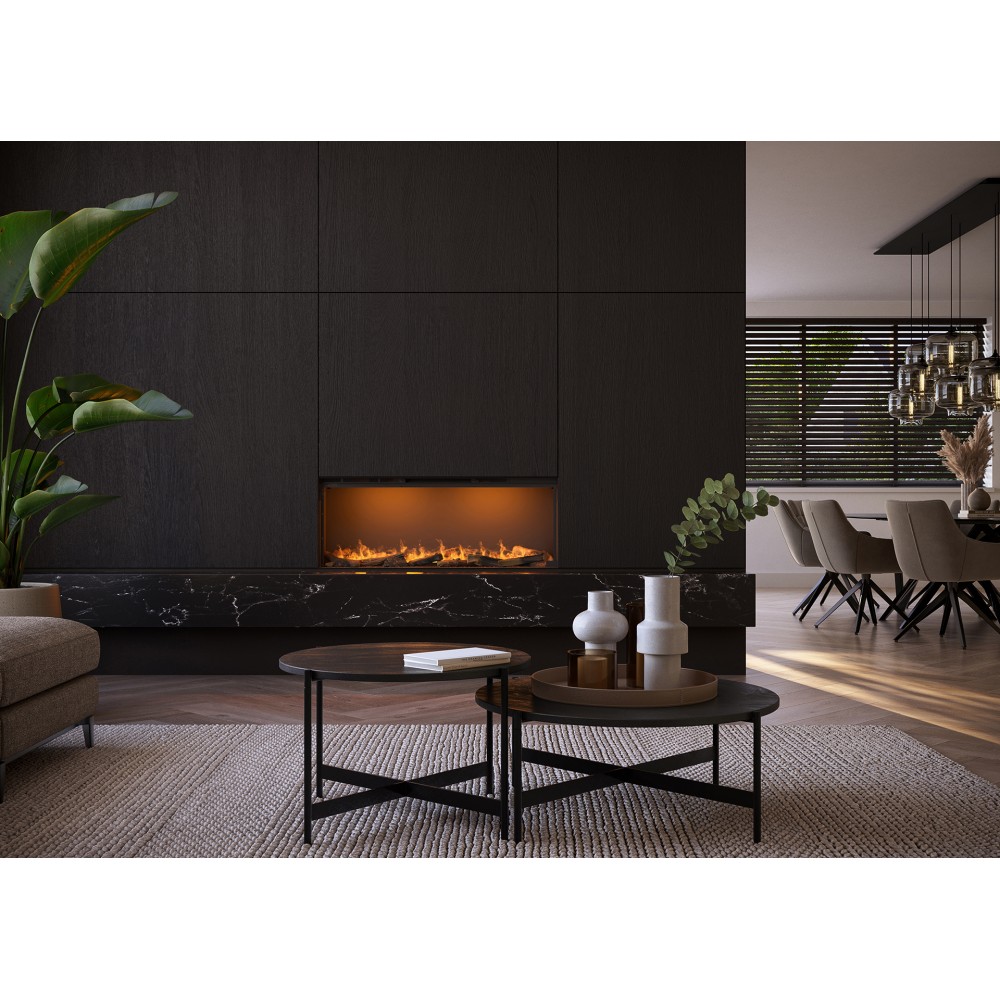 Электрокамин E-SliM Linear был специально разработан для ищущих встроенный электрический камин с потрясающим панорамным видом на пламя и в то же время небольшой глубиной монтажа. Инновационный e-SliM Linear переосмысливает понятие высококачественного камина. Потому что, благодаря поразительно небольшой глубине встраивания, теперь вы можете установить удивительно реалистичный камин, эффект которого базируется на свете и водяном паре, в еще большем количестве мест, чем когда-либо прежде. Доступны 3 ширины для создания атмосферы в помещении любого размера, любой концепции и планирования. Бесконечная возможность наслаждаться огнем без рисков возгорания! Максимальная простота использования; вручную, с дистанционным управлением или с помощью мобильного приложения. Запатентованная система отопления Comfort$aver (макс. 2 кВт). Уникальный запатентованный объемный реалистичный эффект огня на основе водяного пара; 100% реалистичность. Отсутствует потребность в дымоходе и подобных коммуникациях.