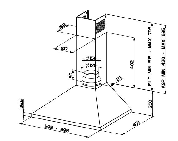 Качество, функциональность и элегантность вытяжки, конкурентоспособной во всех отношениях.