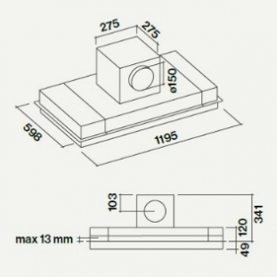 Alba характеризуется очень чистой и минимальной конструкцией, в которой единственным видимым элементом остается выступающая стеклянная рама с функциональным сердцем, скрытым и утопленным в подвесном потолке. Это решение гарантирует идеальную линейность подвесного потолка. Прозрачная рама, которая выходит и обрисовывает определенную линию, освещенную при работе вытяжки, обеспечивает тем самым ценный сценический эффект и эффективное освещение варочной панели