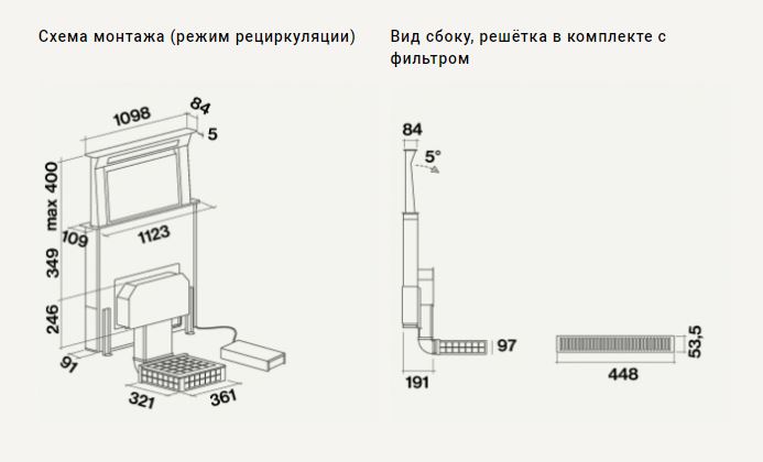 Вытяжка встроена в столешницу, но благодаря специальной системе, автоматически выдвигается во включенном состоянии. Устройство аспирирует дым и пар непосредственно рядом с источником его возникновения, одновременно с этим освещая рабочую поверхность. Такая система обеспечивает большую гибкость и универсальность установки, включая различные варианты подключения и выбор наиболее подходящего двигателя, который может быть установлен в вытяжку. Для максимально полезного использования такого типа вытяжек, мы советуем использовать ее с панорамными встроенными варочными панелями.