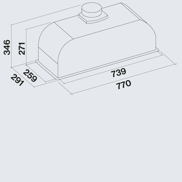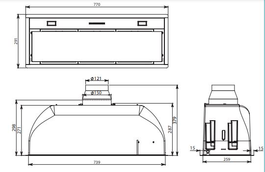 | Особенности | периметральное всасывание, угольный фильтр опция, установка в уровень со шкафчиком |