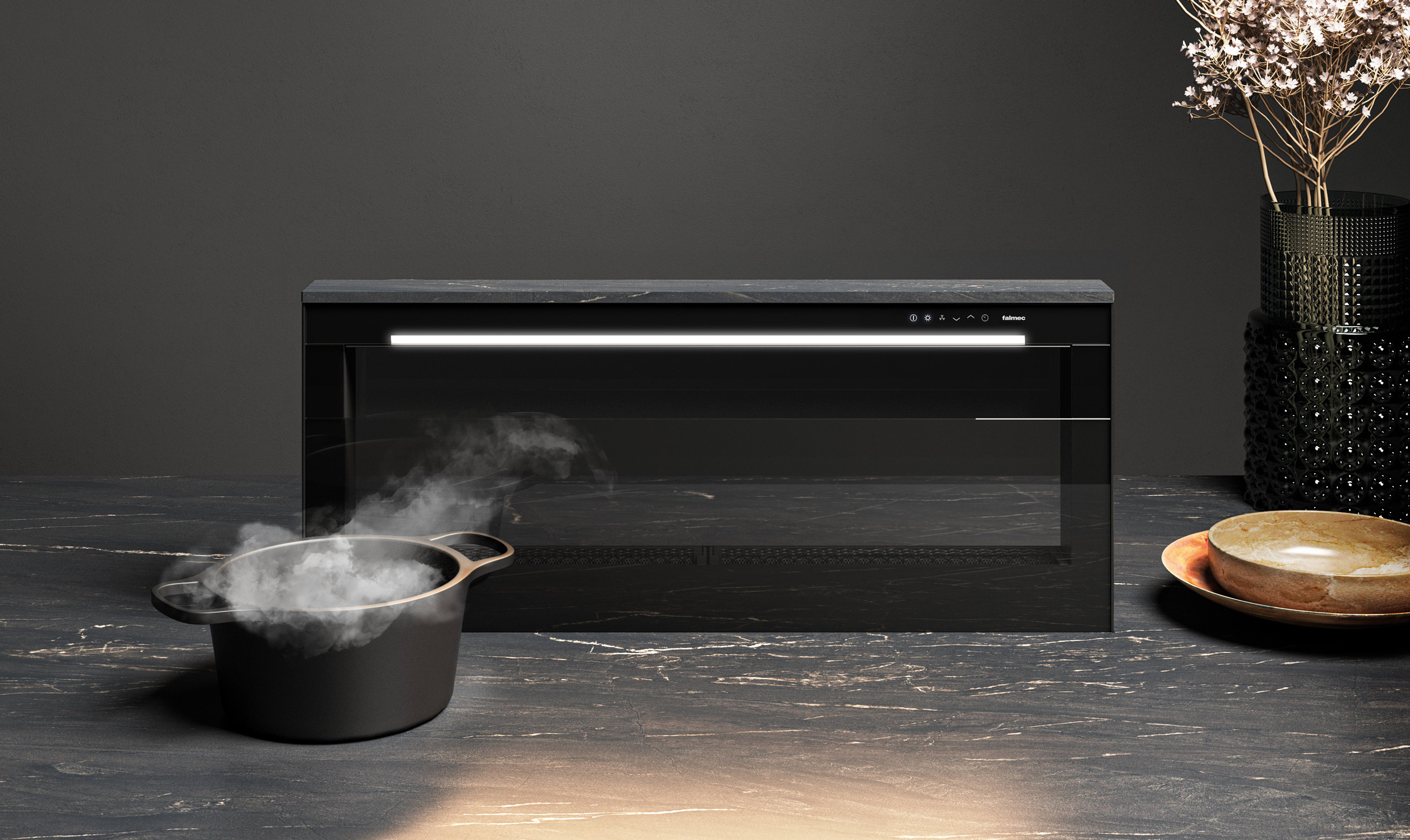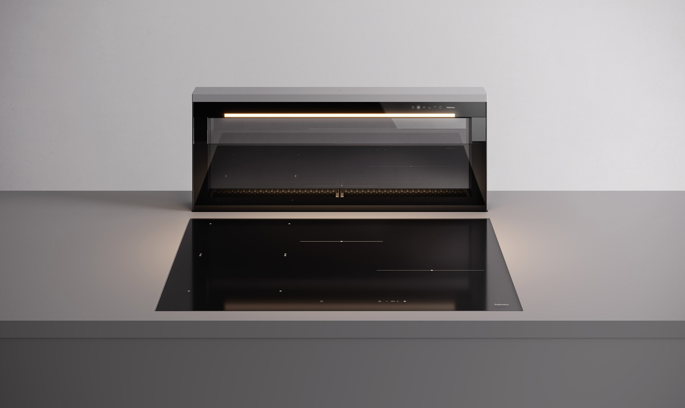 LEVEL INVISIBLE – это интегрированное решение для столешниц с регулируемой по высоте системой вытяжки, подходящей для посуды разных типов. Ее минималистичный дизайн отличается четкими геометрическими линиями и использованием высококачественных материалов, таких как алюминий и стекло. Динамическая светодиодная подсветка обеспечивает равномерное освещение варочной поверхности, а бесщеточный двигатель гарантирует высокую производительность и может быть установлен в тыльной части вытяжки корпуса для оптимизации пространства в кухонном шкафу.
