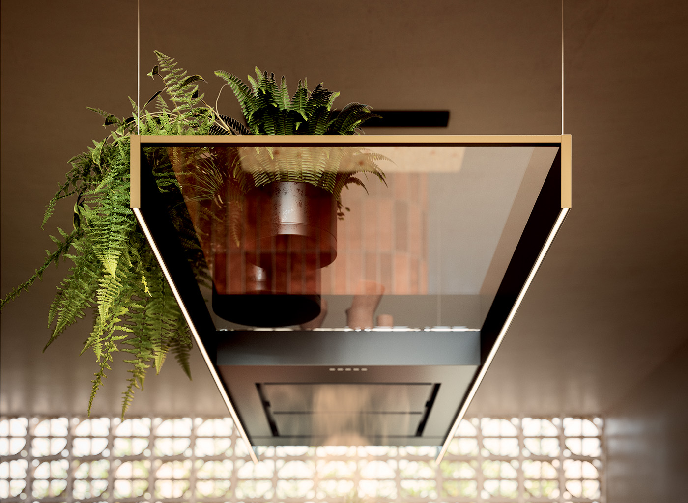 Light от Falmec вдохновлена принципом «лучше меньше, да лучше». Запатентованная технология Multi-Air, производительный мотор и фильтр Carbon.Zeo для эффективной вентиляции кухни. Рама из алюминия с матовой бронзовой отделкой, полки цвета сажи, стекло. Встроенные светодиодные ленты обеспечивают освещение по всей поверхности.