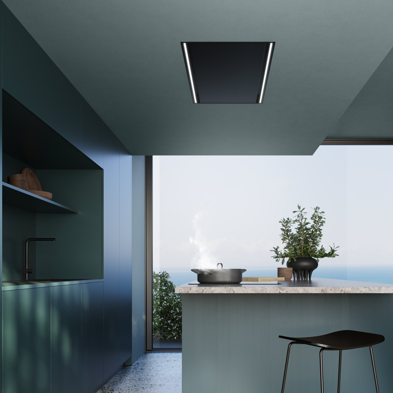 Легкость, элегантность и почти «незаметный» эффект. Это отличительные черты Mirage, новой потолочной вытяжки от Falmec. Разработанная для незаметной интеграции в кухонное пространство, Mirage стильно выделяется, оставляя все внимание на кухне. Минималистичный дизайн в сочетании с изысканным и технологически продвинутым исполнением, заключенный в практически невидимый объект, который, тем не менее, меняет все. На самом деле, две тонкие светодиодные ленты Mirage подсвечиваются, создавая приятную световую атмосферу благодаря динамическому и регулируемому освещению. Первая адаптируется к различным окружающим тонам, а вторая обеспечивает оптимальную видимость на кухонной столешнице во время приготовления пищи.