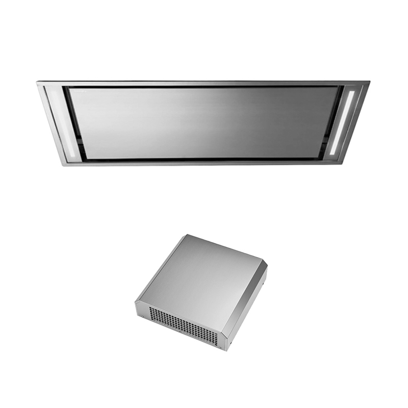 Потолочная вытяжка с выносным мотором. Мотор нужно разместить вне дома, но защитить от погодных условий: разумный и эффективный способ минимизировать шум на вашей кухне!
