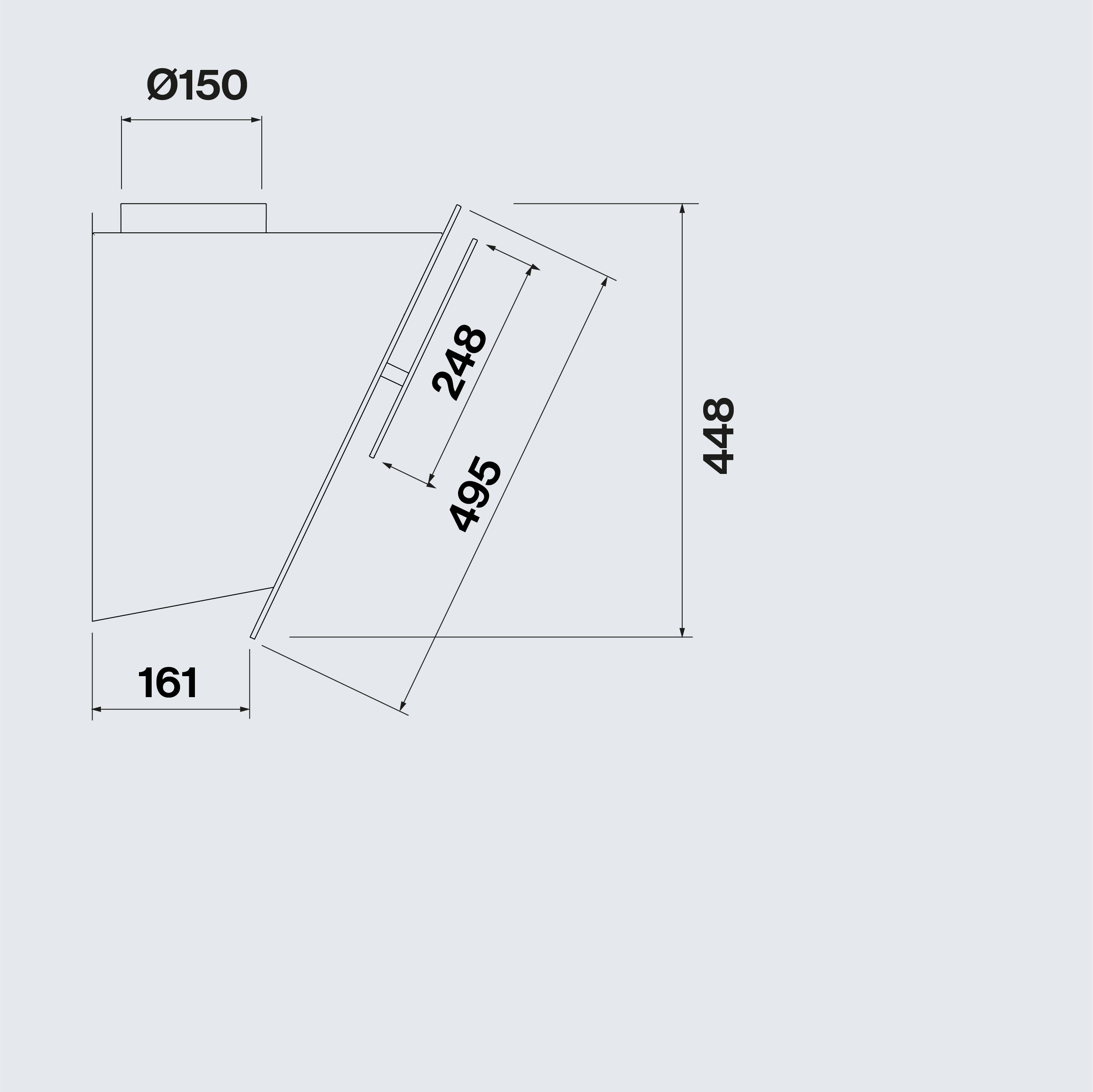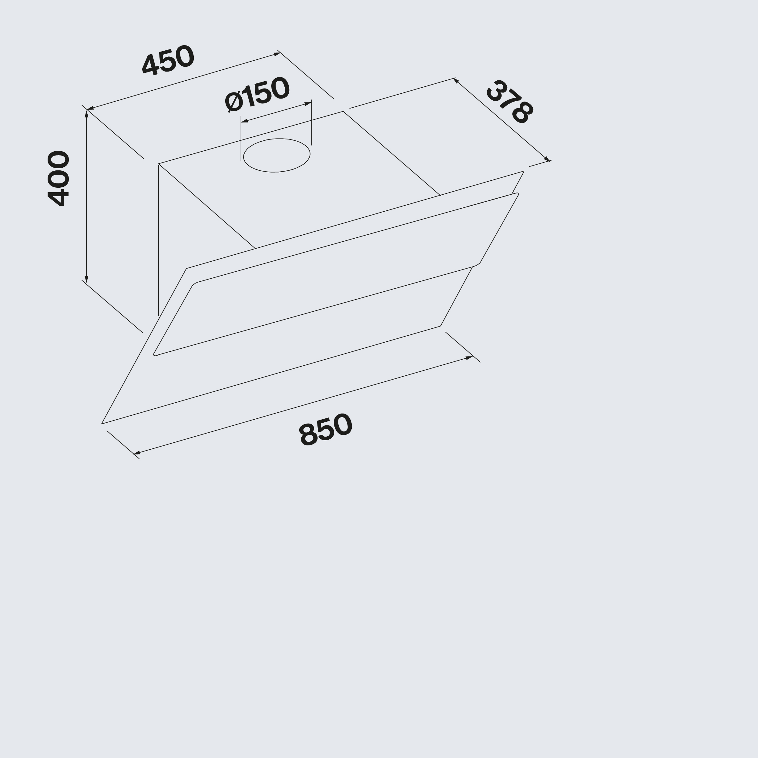 Вытяжка шириной 85 см с отделкой из глянцевого серого закаленного стекла (но также доступна в ширине 55 см и отделкой из глянцевого белого или черного стекла), выглядит как изысканный дизайнерский объект с высокими технологическими характеристиками и раскрывает подлинную красоту.