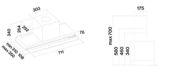 Вытяжка Falmec VIRGOLA TOUCH для встраивания в мебель, корпус из нержавеющей стали с козырьком из закаленного стекла. Данная модификация оснащена сенсорным управлением.
