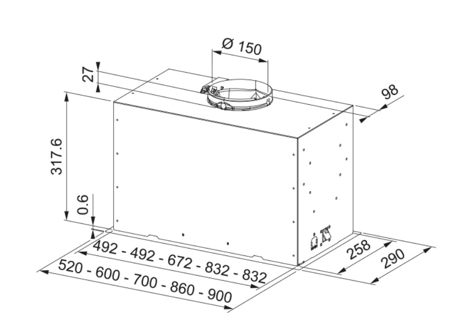 Интенсивный режим. Если необходимо кратковременно вывести большое количество испарений, например во время жарки, включите интенсивный режим. Вытяжка перейдет на максимально возможную скорость. Для вашего удобства интенсивный режим автоматически выключается через 6 минут. Этого времени достаточно, чтобы вытяжка извлекла объем воздуха, равный объему кухни. Мотор Sound Pro. Новая усовершенствованная конструкция турбины позволяет значительно снизить турбулентность. Шум воздуха становится при этом меньше -6дБ. При этом звук гораздо приятнее восприятия.