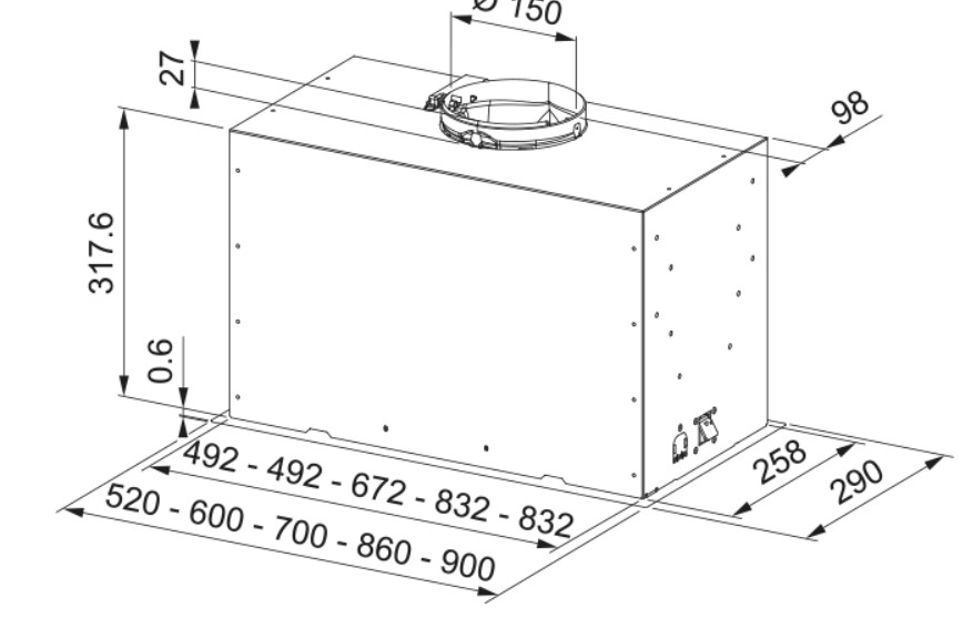 Интенсивный режим. Если необходимо кратковременно вывести большое количество испарений, например во время жарки, включите интенсивный режим. Вытяжка перейдет на максимально возможную скорость. Для вашего удобства интенсивный режим автоматически выключается через 6 минут. Этого времени достаточно, чтобы вытяжка извлекла объем воздуха, равный объему кухни. Мотор Sound Pro. Новая усовершенствованная конструкция турбины позволяет значительно снизить турбулентность. Шум воздуха становится при этом меньше -6дБ. При этом звук гораздо приятнее восприятия.