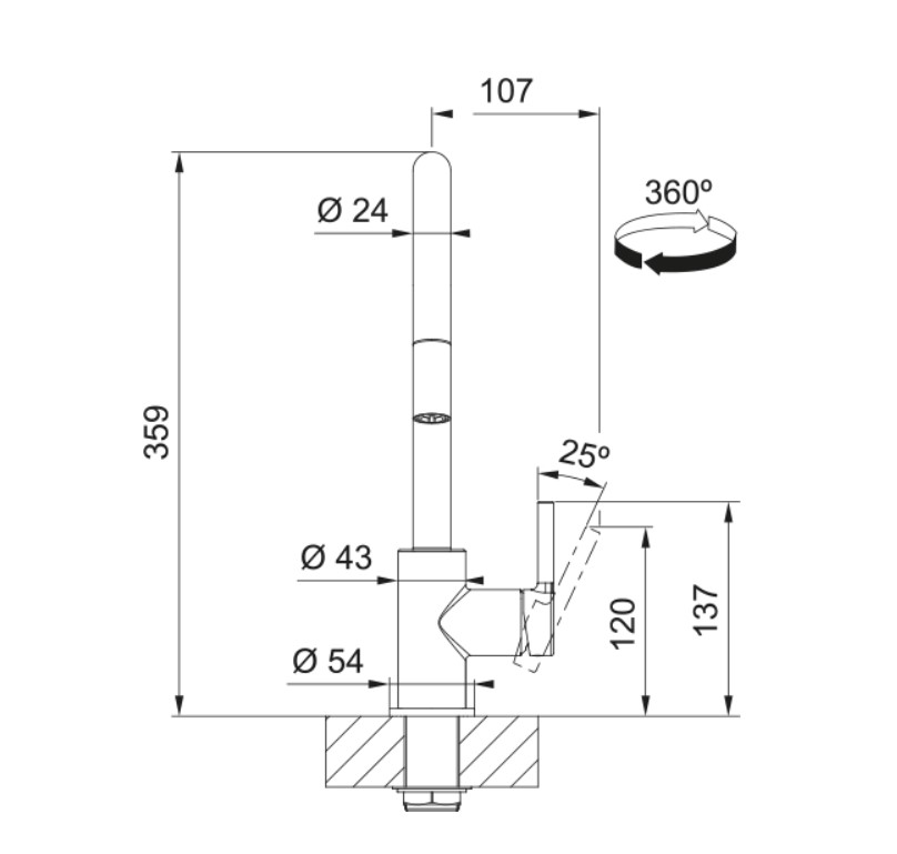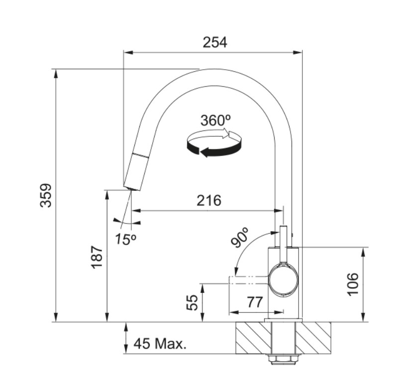 Угол поворота 360 градусов: Благодаря поворотному изливу на 360 градусов, смеситель Franke Lina J обеспечивает максимальную свободу движений, что идеально подходит как для больших, так и для компактных моек. Вы с легкостью наполните большие кастрюли или промоете все углы раковины.