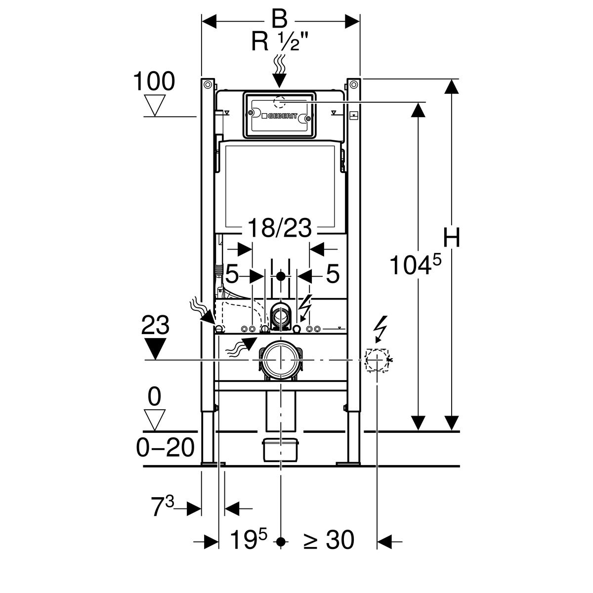 Монтажный элемент для подвесного унитаза Geberit DuofixBasic, 112 см, со смывным бачком скрытого монтажа Delta 12 см