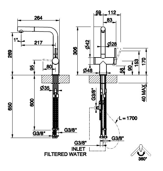 | Особенности | угол вращения излива 360 градусов, керамический картридж |