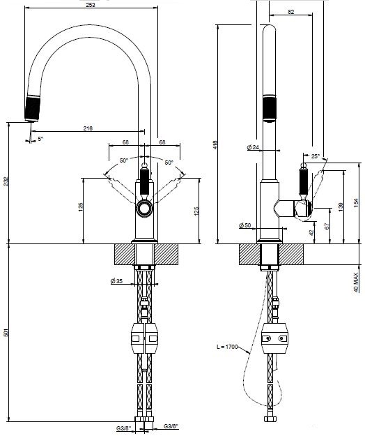 | Особенности | аэратор, угол вращения излива 360 градусов |