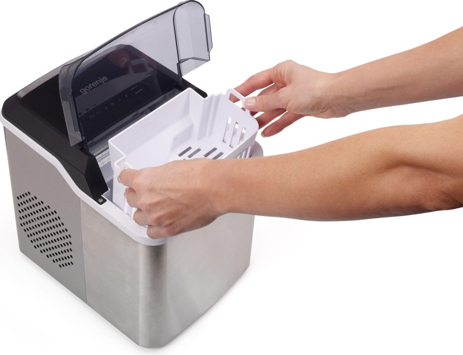 В льдогенераторе Gorenje первые 9 кубиков льда будут уже готовы за 10 минут. За один час производительность составит 50 кубиков. Быстрое приготовление для удовлетворения ваших потребностей. Для того чтобы иметь готовые кубики льда впрок, достаточно наполнить резервуар водой до указанной отметки и выбрать желаемый размер кубиков. Прибор автоматически начнет готовить кубики льда шаровой формы. Ледогенератор Gorenje не тяжел, его легко перемещать и переносить. Подходит для использования дома, в офисных помещениях, небольших семейных кафе, мини-гостиницах.