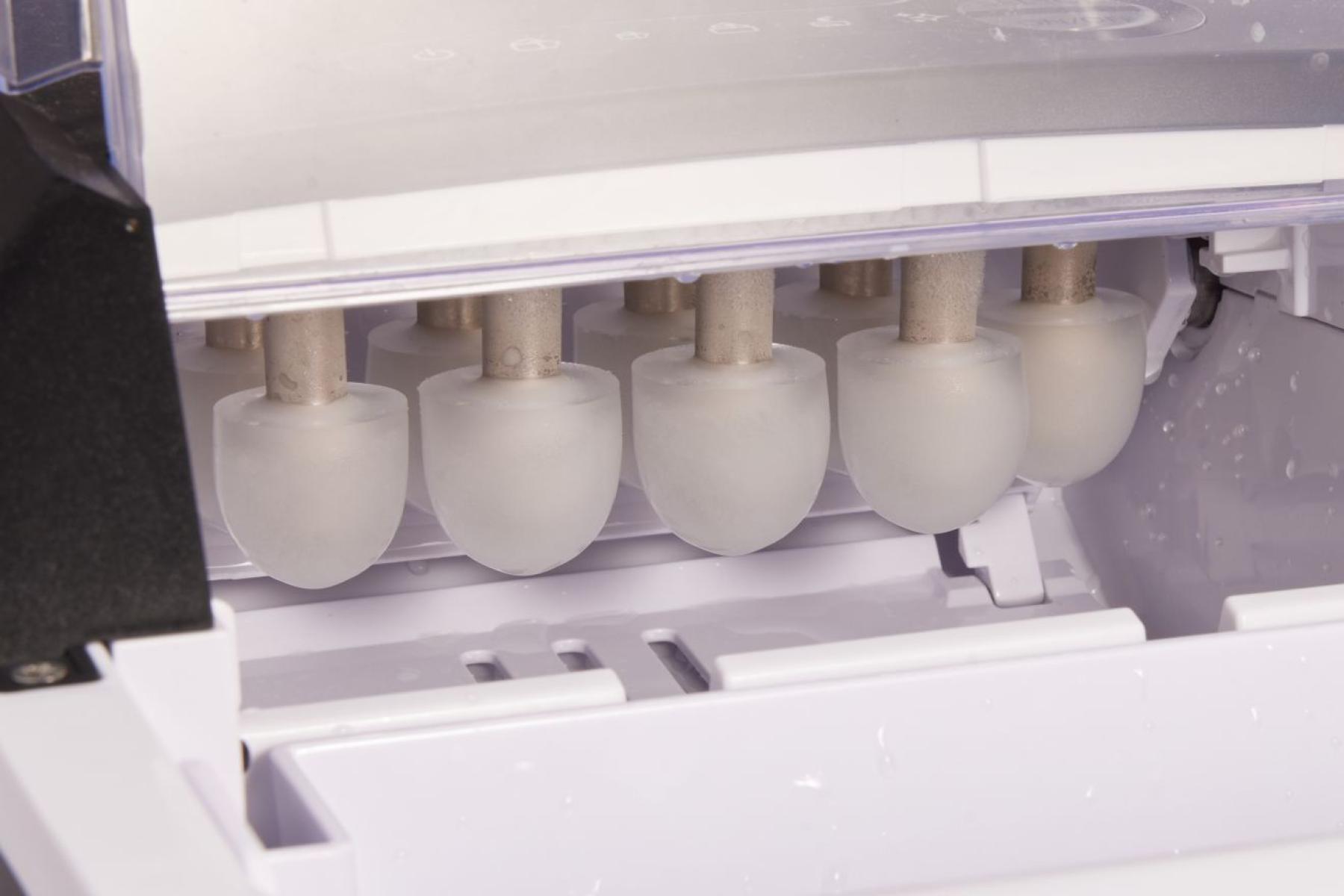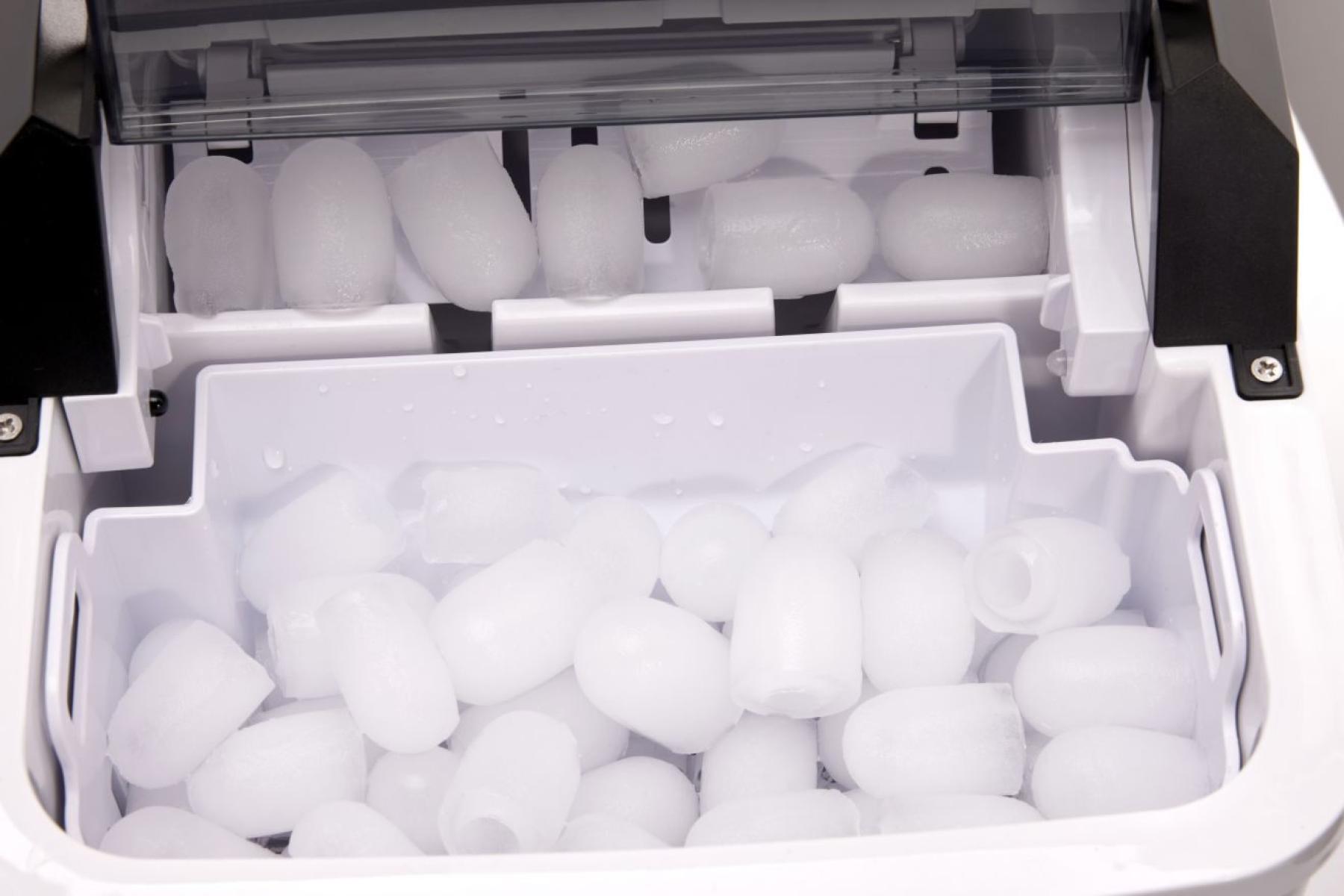На панели управления есть только одна кнопка. Вы можете выбрать большие или маленькие кубики льда. Световой индикатор заполненной корзины для льда включится при заполнении корзины для льда. Индикатор уровня воды напомнит вам, что в резервуар нужно добавить воду. Устройство также имеет световой индикатор самоочистки. При помощи входящего в комплект черпака для льда вы с легкостью сможет брать из корзины только желаемое или нужное количество льда. Оставшийся лед можно использовать позже, или он медленно растает, и устройство переработает воду, чтобы сделать новый лед.