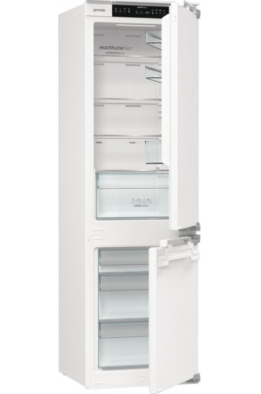 Модель предполагает полную встройку с жестким креплением мебельных фасадов. Шарнир с доводчиком SoftClose обеспечивает плавное и контролируемое закрывание дверцы. Возможность перенавешивания позволяет изменять направление открывания в соответствии с конфигурацией кухни. Система NoFrost Plus предотвращает образование инея в морозильном отделении. Технология Multi Air Flow поддерживает равномерную циркуляцию воздуха на всех уровнях хранения. При обесточивании температура сохраняется до 10 часов.