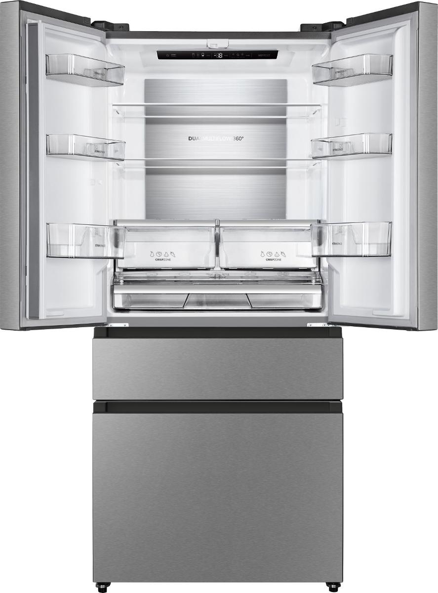 Обе камеры оборудованы NoFrost, что исключает образование льда на стенках и требует минимального обслуживания без ручной разморозки. Инверторный компрессор обеспечивает энергоэффективную, тихую и стабильную работу, оптимизирует потребление электроэнергии и поддерживает постоянную температуру внутри камеры. Управление холодильником электронное и цифровой дисплей позволяет удобно устанавливать и контролировать температуру в холодильной и морозильной камерах.