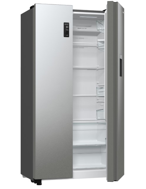Gorenje NRR9185EAXLWD – это большой и впечатляющий двухкамерный холодильник формата Side-by-Side, который прекрасно сочетает в себе дизайн, практичность и технологические преимущества. Его строгий нержавеющий корпус со скрытыми вертикальными ручками и LED-дисплеем придает интерьеру изысканность, создавая современный образ вашей кухни, где стиль не жертвует комфортом.