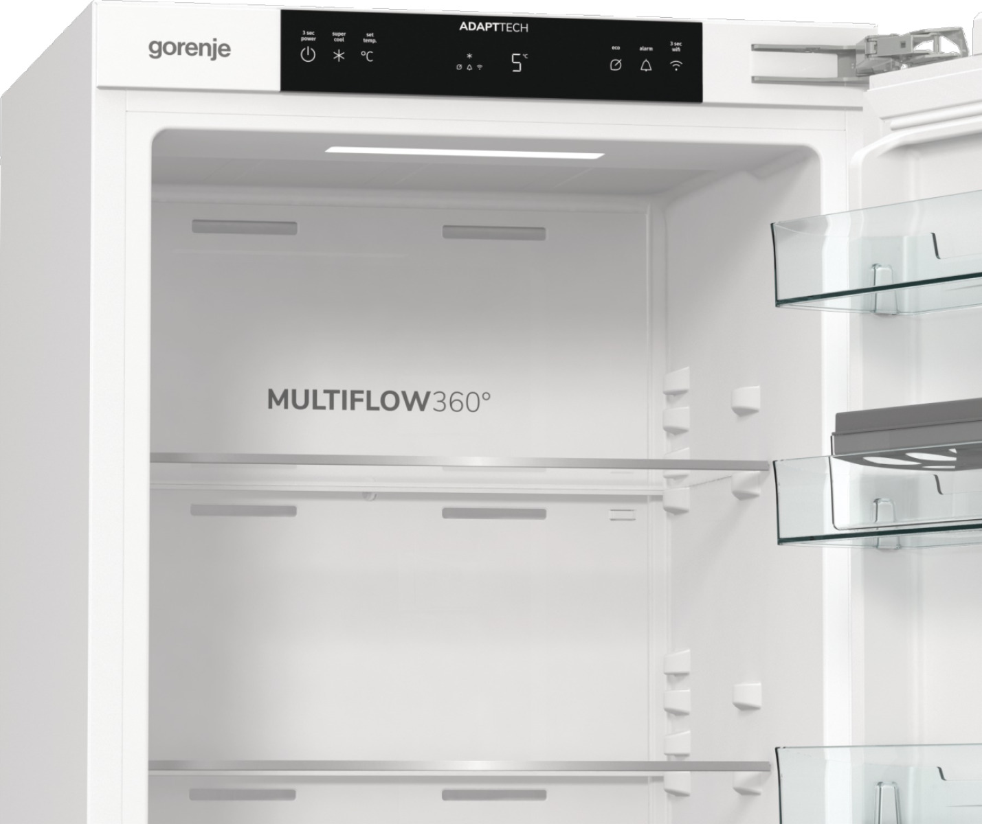 Gorenje RI517E62WF – это встроенный холодильник для тех, кто хочет сохранить цельный вид кухни и получить удобное, хорошо организованное пространство для ежедневного хранения продуктов. Модель делает ставку на комфорт в использовании, тихую работу и аккуратную интеграцию в мебель, поэтому хорошо подходит для современных кухонь, где важны не только функциональность, но и эстетика. Она имеет полезный объем 300 л, принадлежит классу энергоэффективности E и работает с уровнем шума 35 дБ, поэтому в повседневной жизни чувствуется спокойно и ненавязчиво.