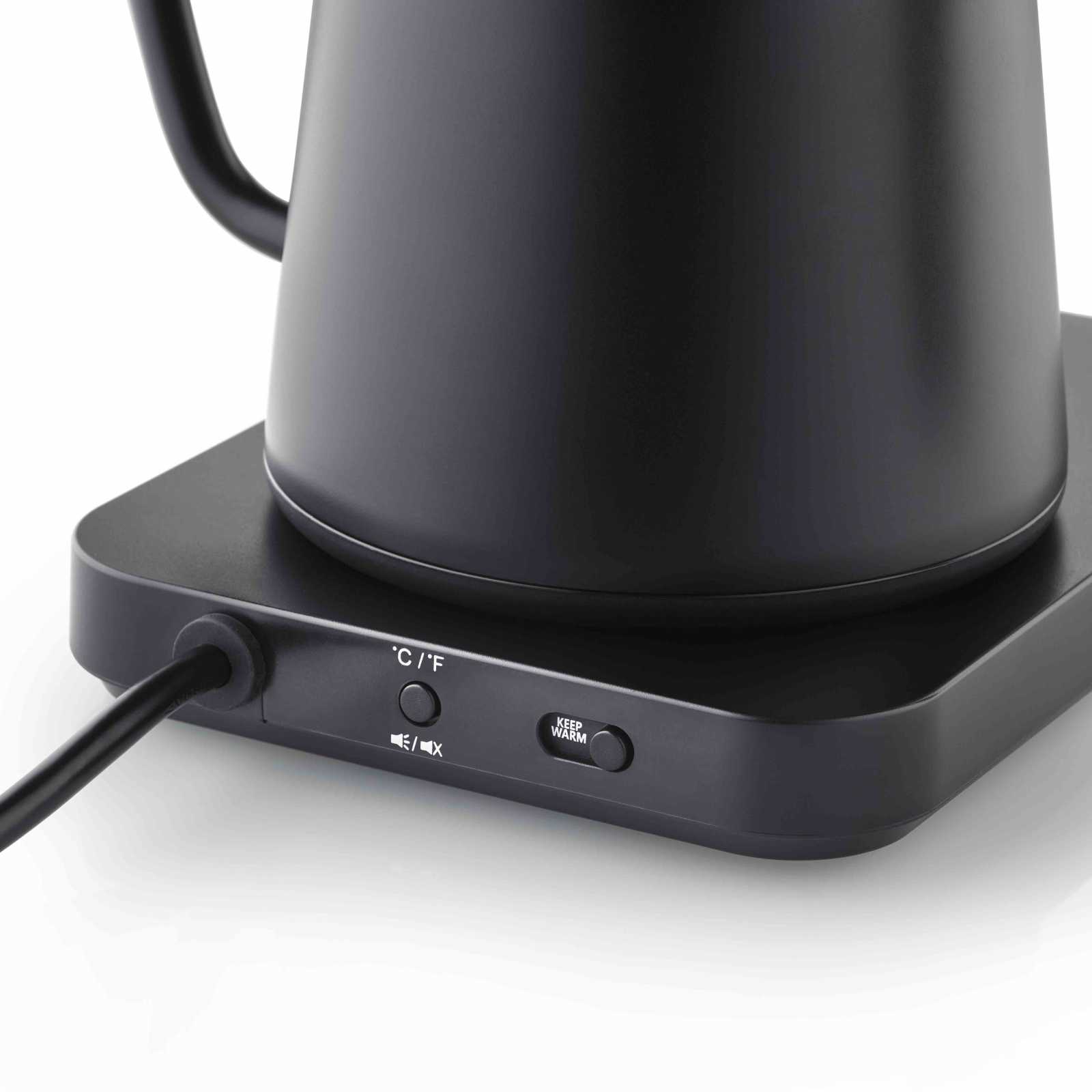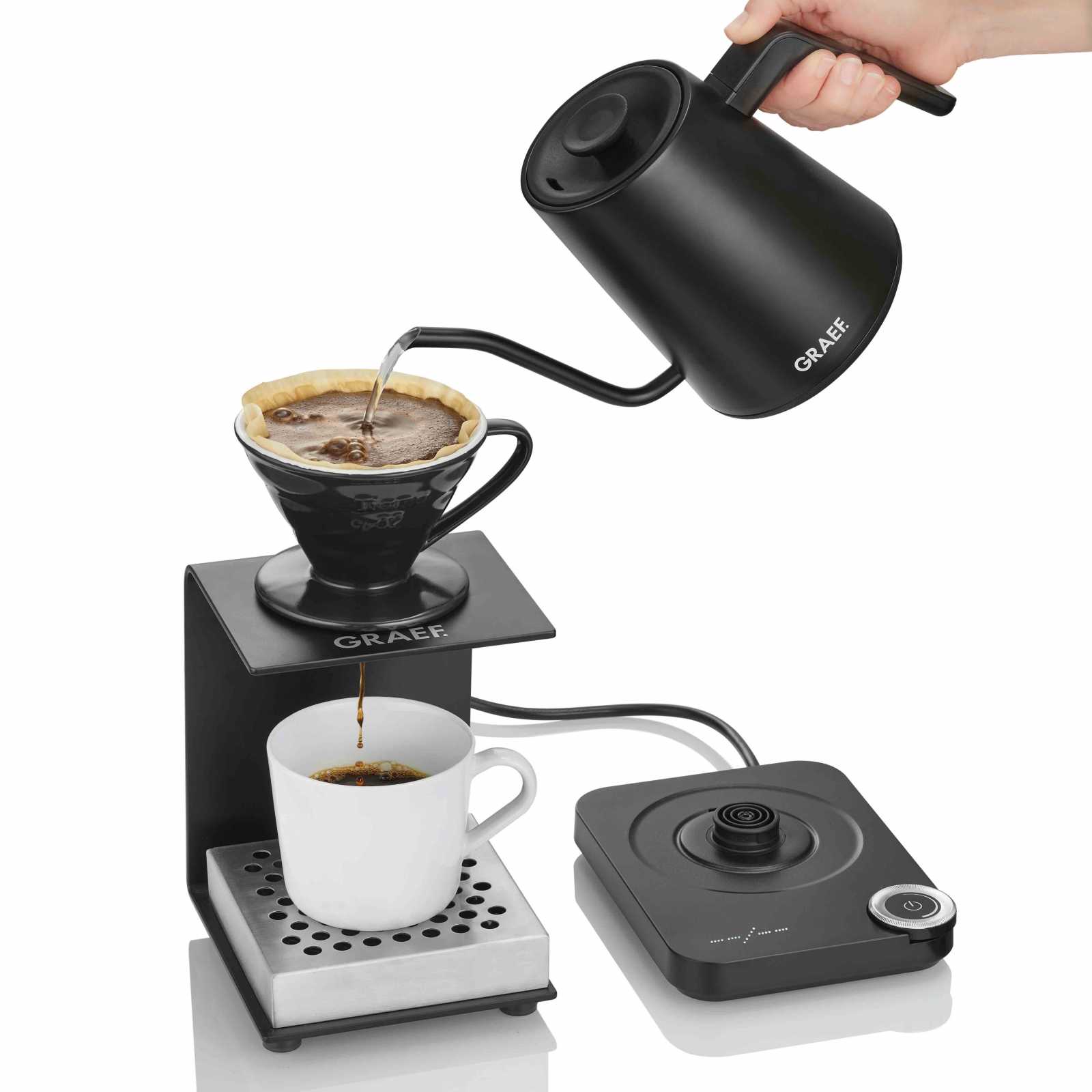 Попробуйте кофе или чай, идеально сваренные вручную с помощью чайника с тонким носиком GK502 от GRAEF. Контролируйте процесс заваривания вашего любимого сорта кофе или чая с искусной точностью. Настоящий предмет изящной коллекции – чайник от GRAEF для любителей чая и кофе, который мастерски готовит их в соответствии со всеми традициями ручного приготовления. Так вкусно еще никогда не было! В Pour-over GK502 функция автоматического поддержания тепла сохраняет температуру воды в течение 30 минут. При необходимости можно включить или выключить на задней панели базовой станции. Здесь же можно включить или выключить предупреждающие звуковые сигналы и изменить единицы измерения температуры C/F.