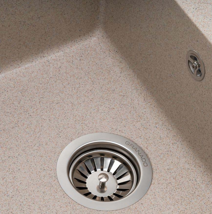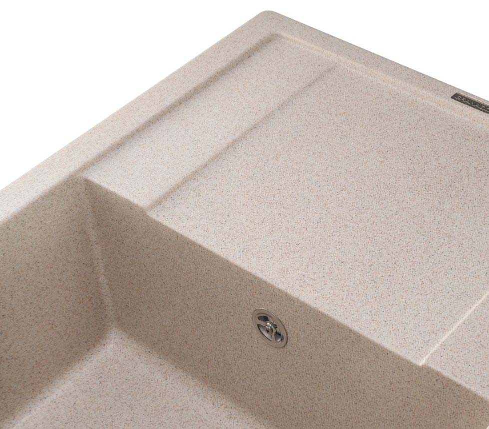 В глубокой и просторной чаше Almeria можно разместить практически весь сервис. А еще мойка располагает к себе оригинальным дизайном. Мойка на 80% состоит из гранитного песка и на 20% связующие материалы, которые придают ей уникальные свойства - она прочная и устойчивая к внешним воздействиям.