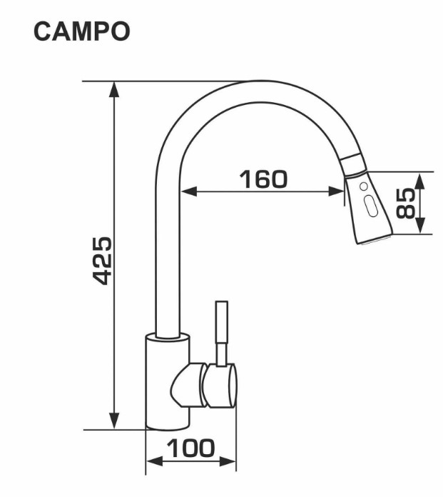Длина выдвижного шланга – 700 мм, поэтому вы уверенно достанете каждую тарелку или моющий фрукт, а ваша мойка из искусственного камня будет сиять чистотой. Параметры, которые делают смеситель уместным, какого бы размера ни была ваша врезная мойка. А если мойка гранитная имеет большую чашу или две – GRANADO CAMPO станет просто идеальным решением.