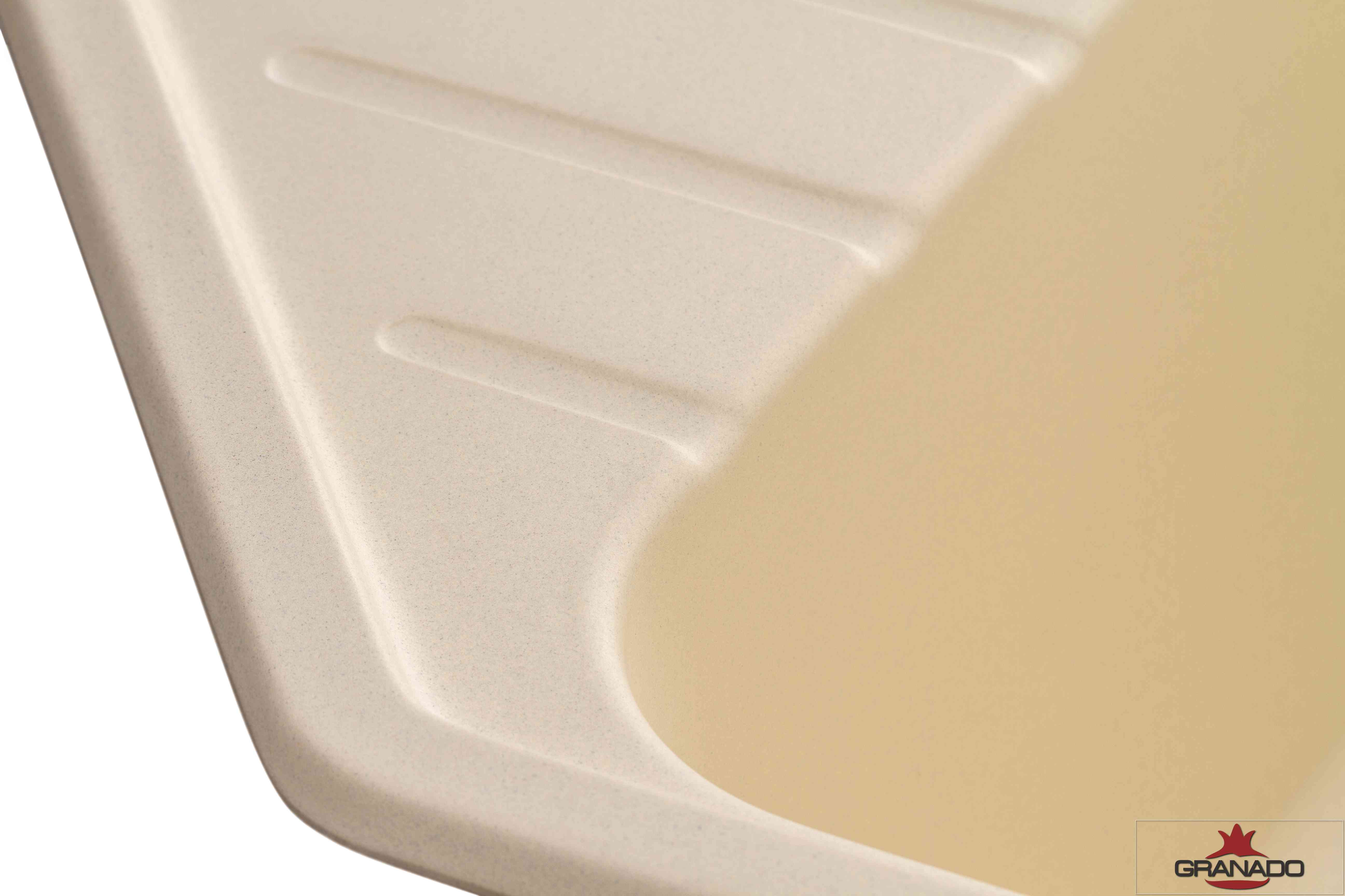 Вдвое больше пользы. Трапециевидная мойка Ibiza Ivory снабжена сразу двумя глубокими чашами. Это очень удобно – пока в одной из них размораживается мясо, промываются овощи, ждут своей очереди чашки, ложки или вилки, в основной чаше можно спокойно помыть посуду. Можно ли делать два дела одновременно одинаково хорошо? С Granado Ibiza это проще простого! Защита от случайностей. Бортики и ребра просторного сушильного крыла мойки Granado Ibiza защищают посуду от соскальзывания на пол. Вода, что стекает с мокрой посуды, возвращается в чашу, не стекая на пол. В чашу мойки вмонтирован дополнительный слив – вода из чаши не перельется через край, даже когда в чаше много посуды.