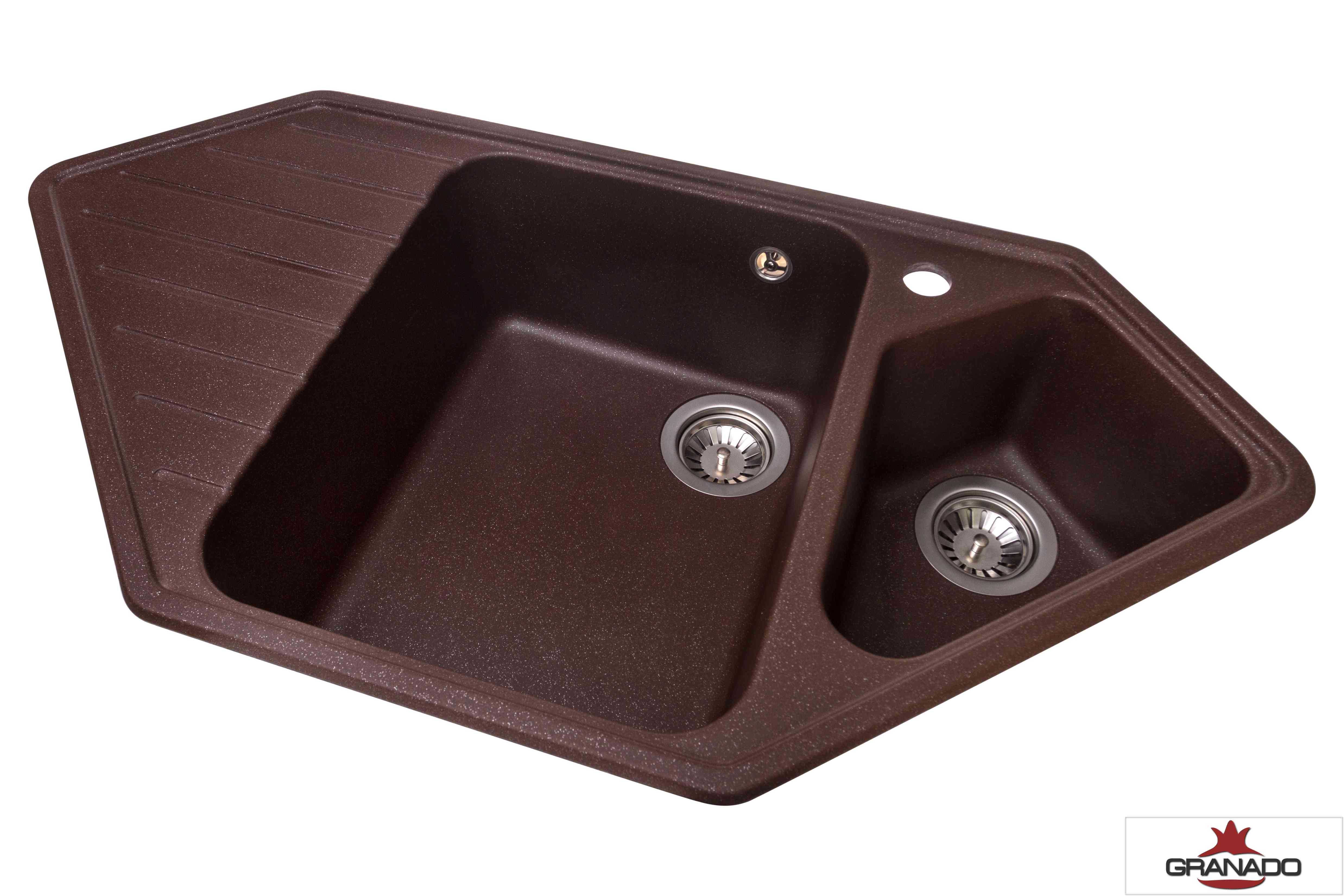 Вдвое больше пользы. Трапециевидная мойка Granado Ibiza Marron снабжена сразу двумя глубокими чашами. Это очень удобно – пока в одной из них размораживается мясо, промываются овощи, ждут своей очереди чашки, ложки или вилки, в основной чаше можно спокойно помыть посуду. Можно ли делать два дела одновременно одинаково хорошо? С Granado Ibiza это проще простого! Защита от случайностей. Бортики и ребра просторного сушильного крыла мойки Granado Ibiza защищают посуду от соскальзывания на пол. Вода, что стекает с мокрой посуды, возвращается в чашу, не стекая на пол. В чашу мойки вмонтирован дополнительный слив – вода из чаши не перельется через край, даже когда в чаше много посуды.