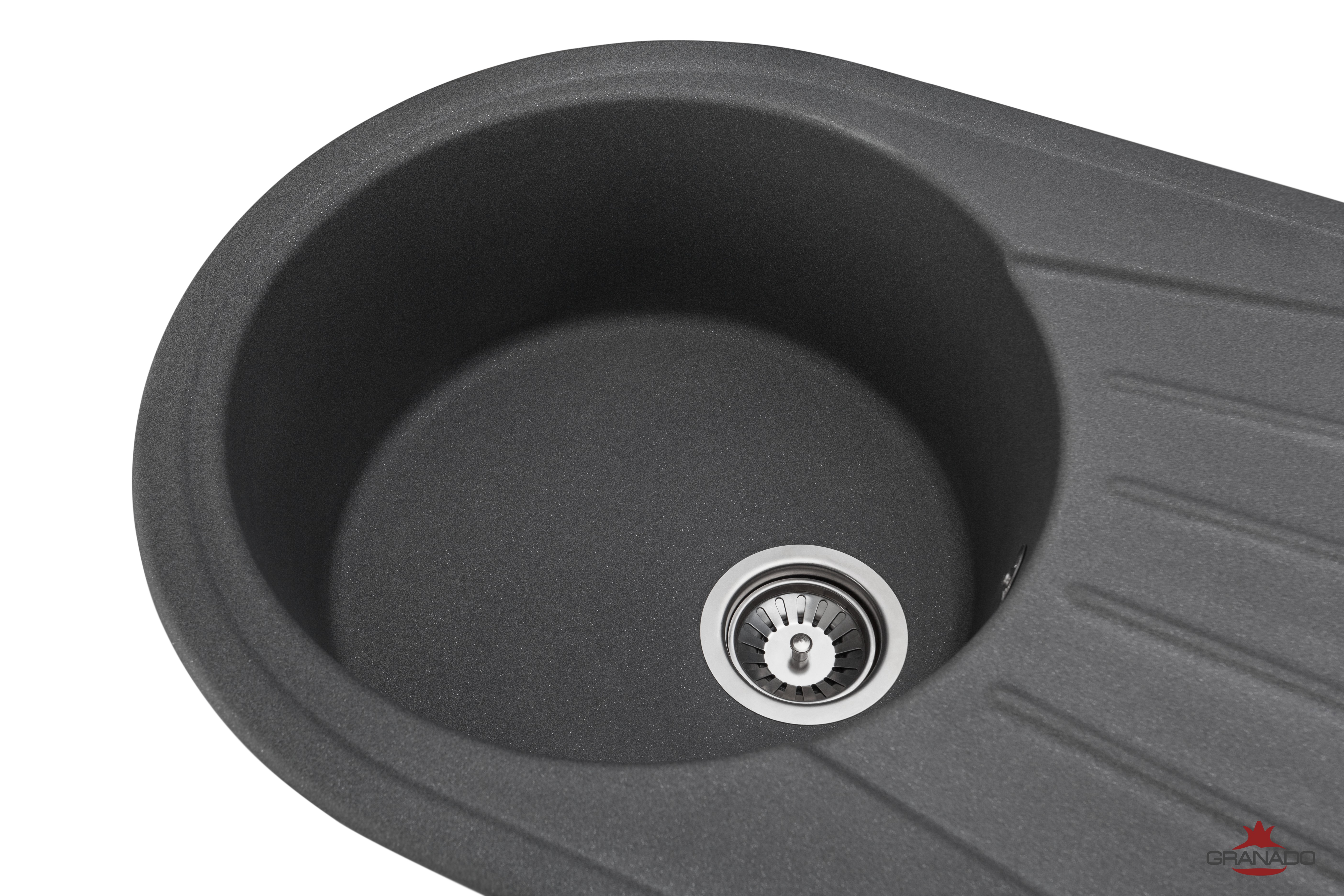 Вместительная чаша и большое сушительное крыло. Granado Murcia Grafito – оптимальный выбор для украинских кухонь. Вместительная чаша помогает уложить в мойку всю посуду, что осталась после ужина большой семьи или шумной вечеринки. Вымыв посуду, оставьте её на просторном сушильном крыле – здесь она высохнет быстро. Безопасность имеет значение. В мойку Granado Murcia вмонтирована боковая защита от перелива. Теперь вода не выплеснется из мойки, когда основной слив случайно прикрыли посудой. Ребристая поверхность сушильного крыла и бортики по краям овальной мойки защищают дорогостоящий сервиз от падений, не оставляя нелепым случайностям ни шанса!Овал – это красиво. Овальная форма мойки Granado Murcia отлично сочетается и с классическим, и ультрасовременным дизайном интерьера кухни.