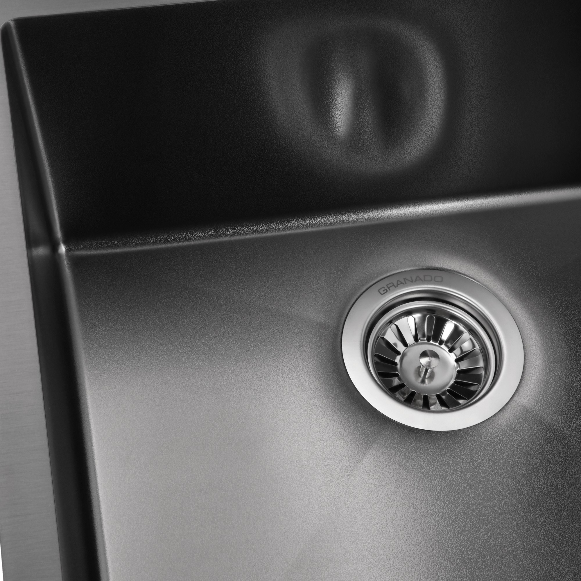 Черный цвет, нанесенный методом вакуумного напыления PVD, придает GRANADO Under top max STEEL S201 black textures особую роскошность. В то же время, такая обработка дополнительно улучшает характеристики стали. Поверхность этой модели поглощает шум, оставляя вам только преимущества стальной кухонной мойки. Большая чаша GRANADO Under top max STEEL S201 black textures поместит немало посуды или продуктов. И не будет забирать значительную площадь вашей рабочей поверхности.