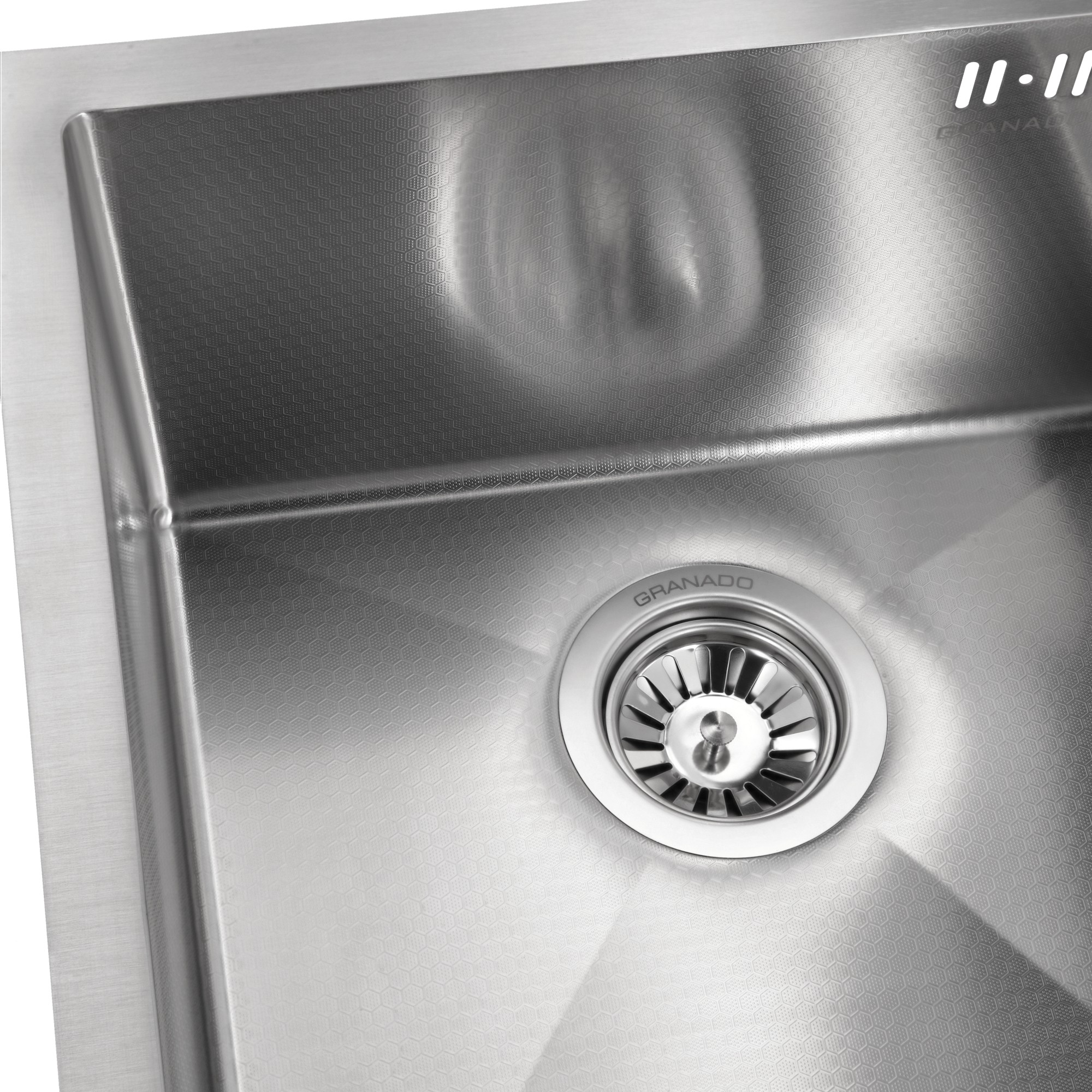 GRANADO Under top STEEL S304 honeycomb – мойка из нержавеющей стали, которую ждет ваша кухня. Простая геометрия и эргономичный дизайн квадратной чаши делают ее уместной и в холостяцкой студии, и на большой семейной кухне. Смонтированный под столешницей, GRANADO Under top STEEL S304 подчеркнет лаконичность современного интерьера с акцентом на пространстве.