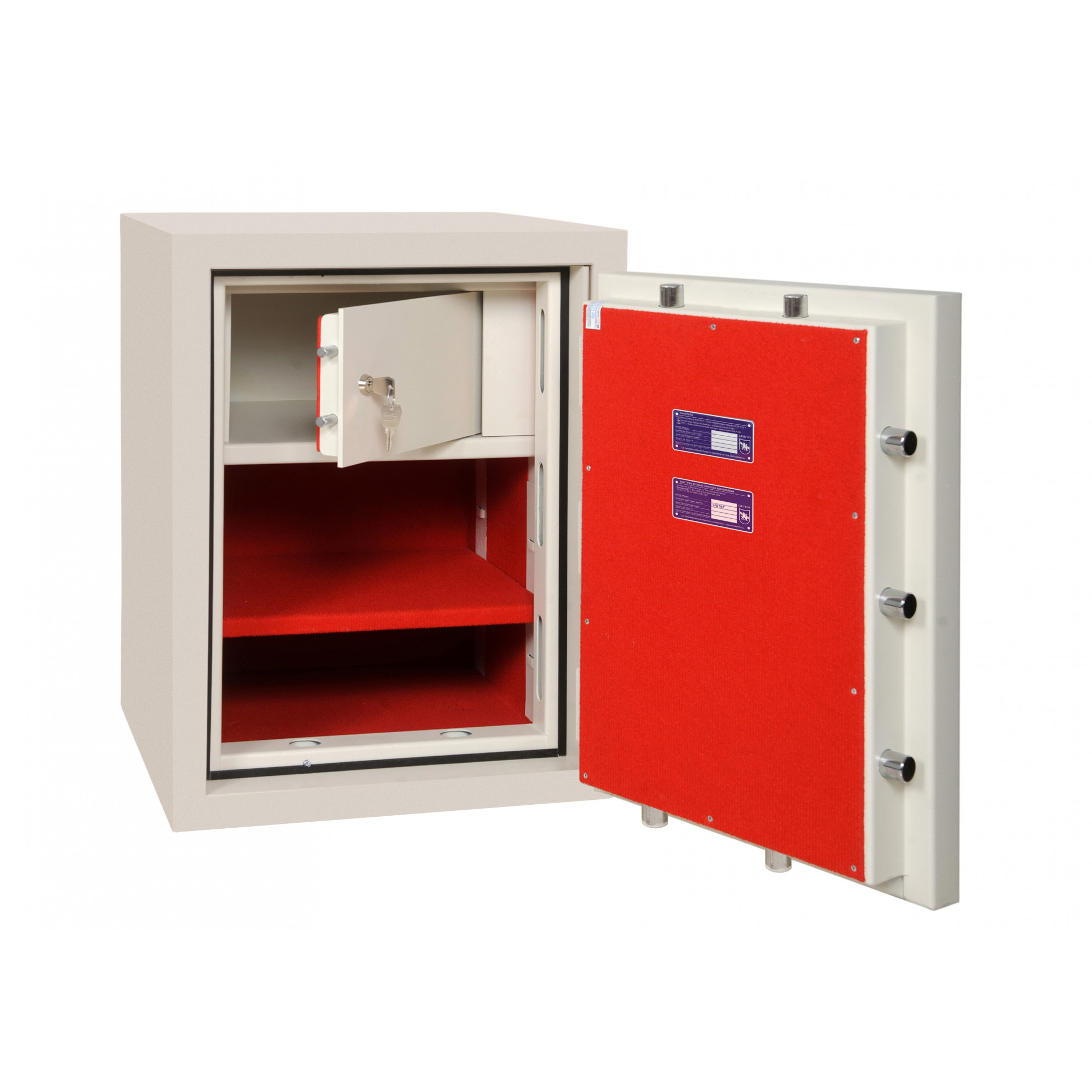 | Система закрытия замка | ключевой сейфовый замок IVOX (Германия) + электронный кодовый сейфовый замок WITTKOPP (Германия) |
