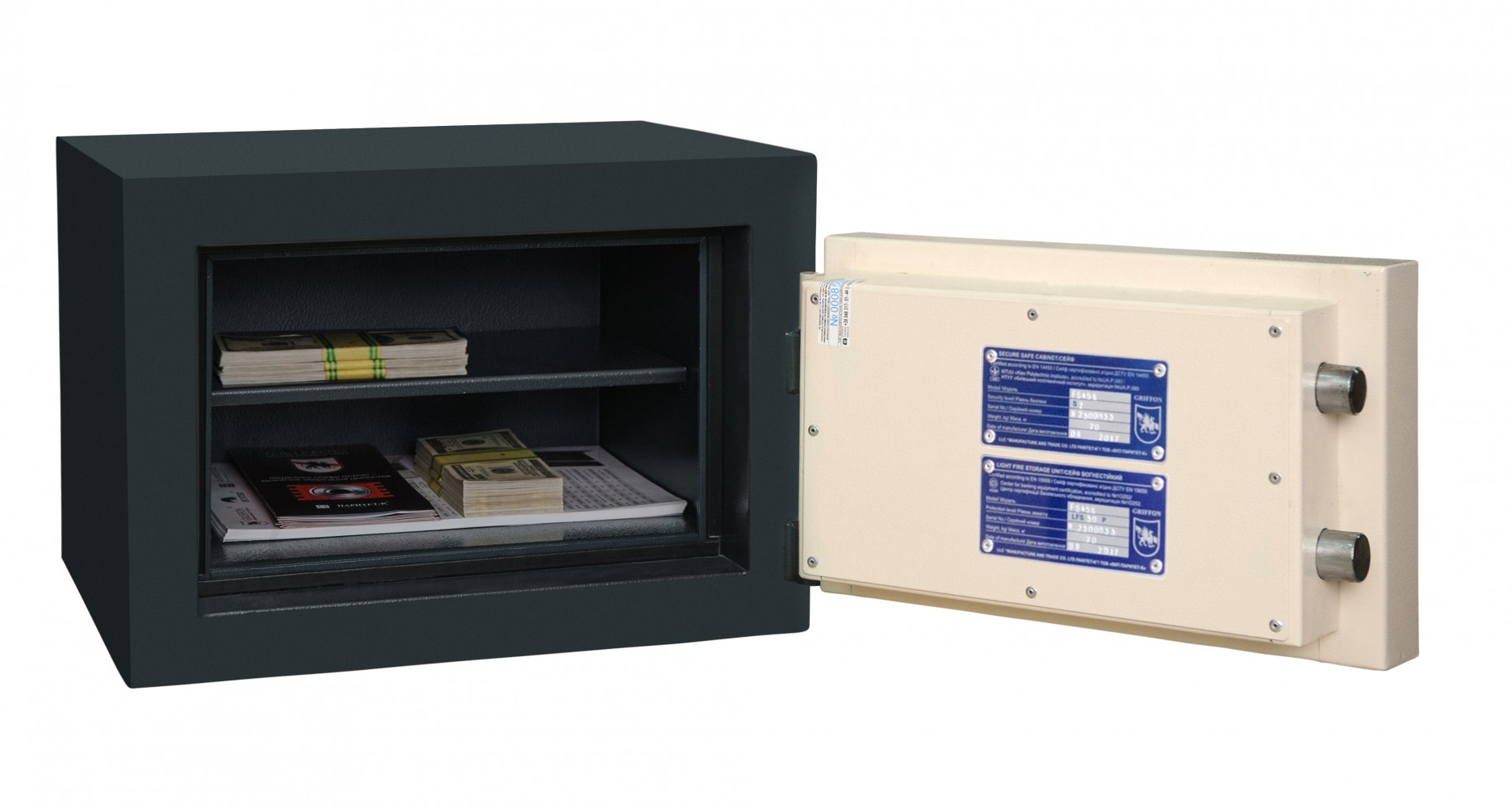 Огнестойкие сейфы серии FS от торговой марки Griffon – отличный выбор для зданий, в которых есть риск возникновения пожара. Благодаря специальному наполнению двери и корпуса такая конструкция способна в течение получаса защищать от воздействия высоких температур даже самые хрупкие вещи. Сейфы сертифицированы по классу LFS 30P ДСТУ EN 15659. Современные замки и особенности внутреннего устройства делают использование сейфа максимально комфортным. Мощная ригельная система запирания обеспечивает высокую сопротивляемость в случае попытки взлома.