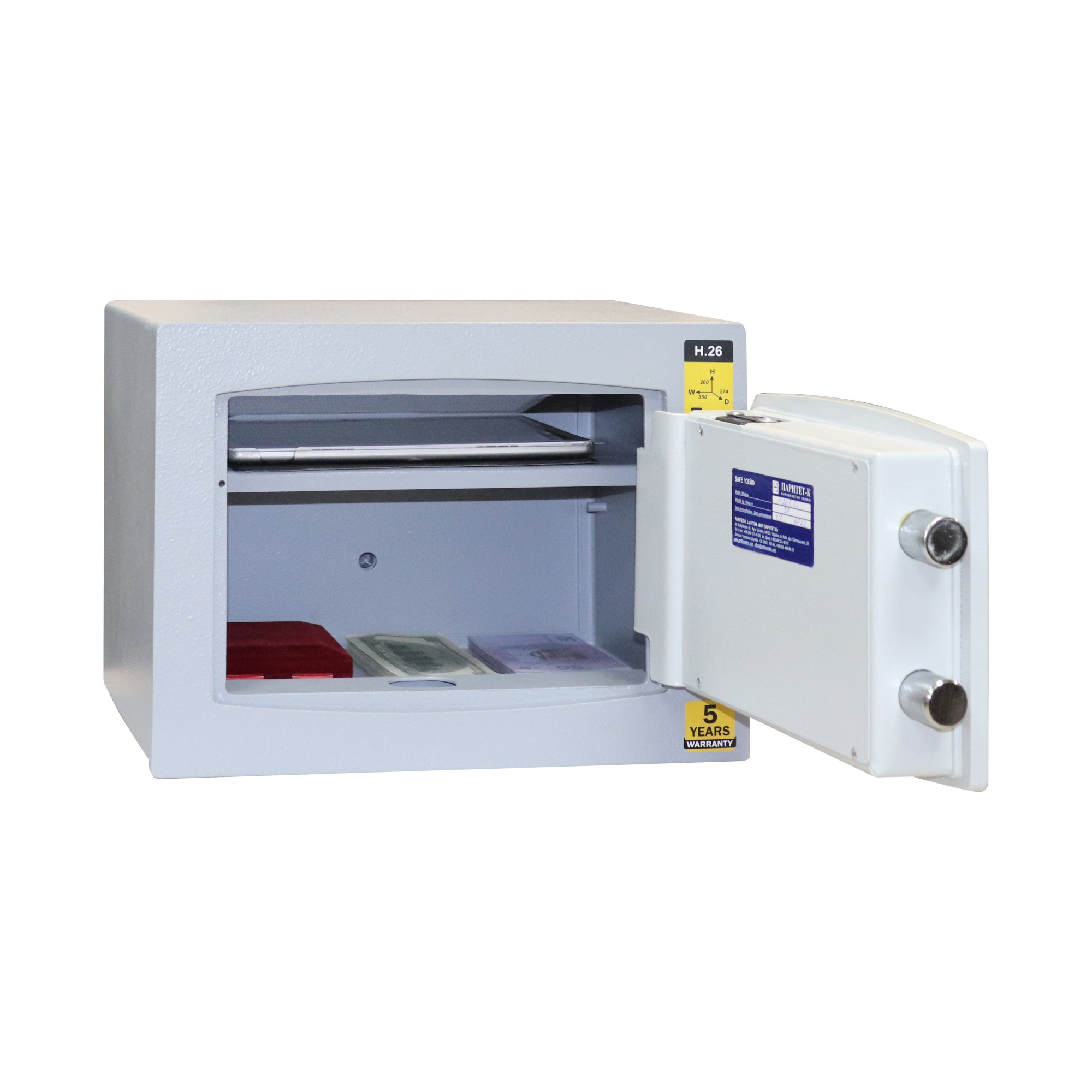 Griffon H.26.E SL – надежный взломостойкий сейф, предназначенный для безопасного хранения ценностей, документов или наличных денег. Его компактные размеры и продуманная конструкция с двухстенным корпусом и заполнением фортификационным бетоном делают модель незаметным и прочным решением для дома или офиса.