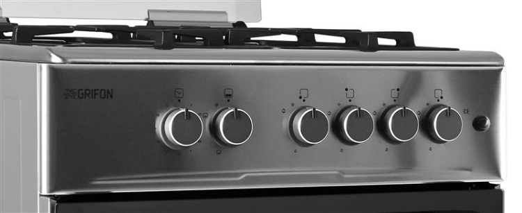 Grifon G643X-CAWB3 – это газовая кухонная плита с духовкой объемом 70 литров. Духовка оснащена рельефными направляющими с тремя уровнями для оптимального размещения посуды. Есть также подсветка для удобного контроля приготовления. Дополнительно плита имеет газ-контроль для поверхности и духовки, электроподжиг в ручке и механический таймер.