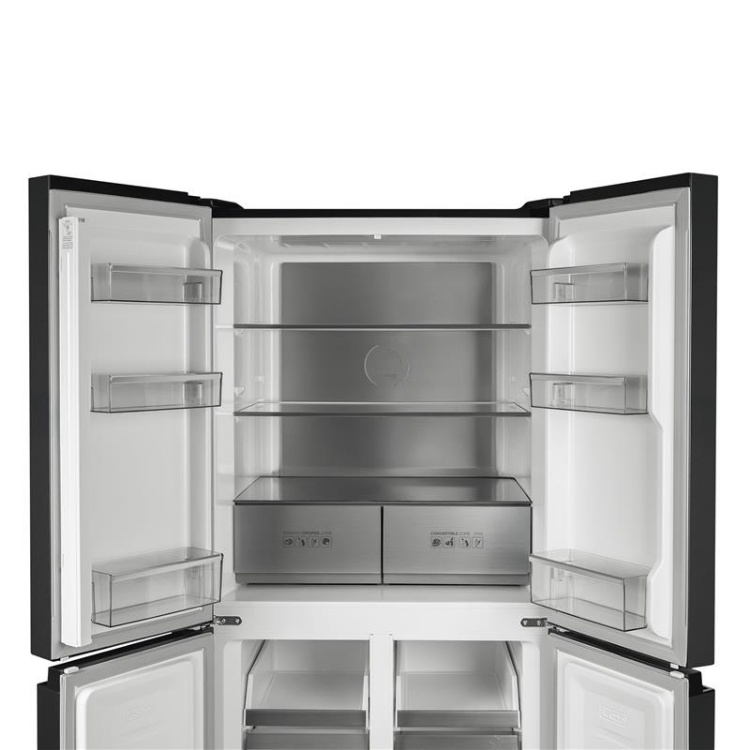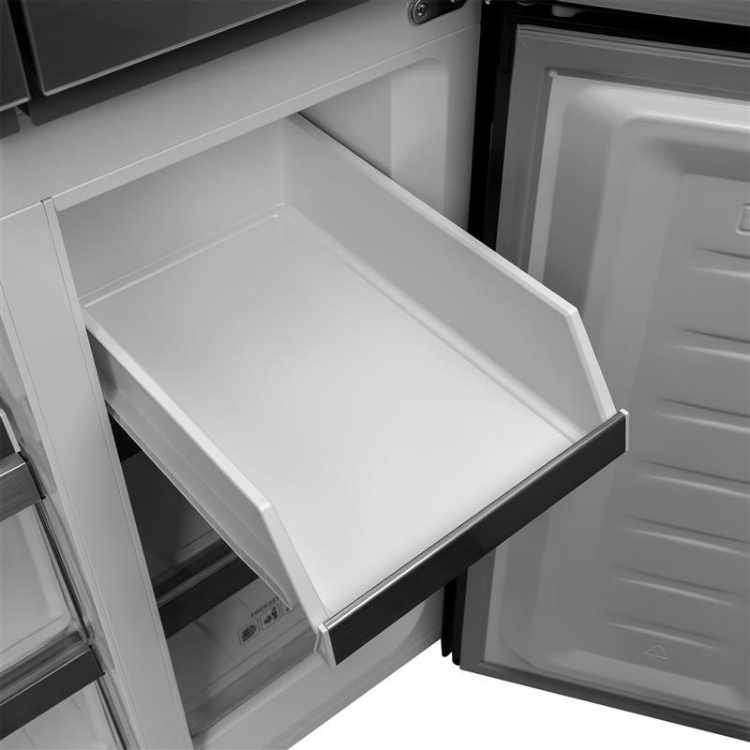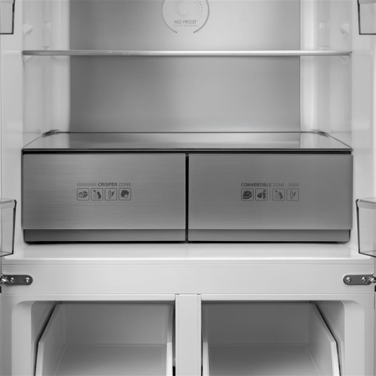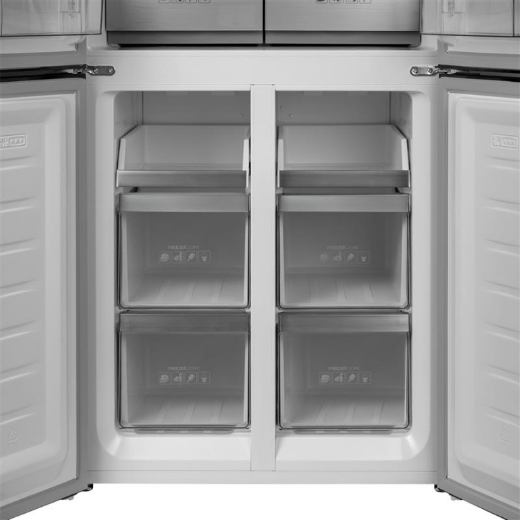 Grifon NFND‑180/466‑4DX Max — многодверный холодильник с нижней морозильной камерой, рассчитанный на семью или пользователей, требующих много места для хранения продуктов. Эта модель отличается большим полезным объемом, что делает его очень вместительной для повседневного пользования от большого количества напитков до сезонных запасов мяса и овощей. Холодильник имеет две камеры с нижним расположением морозильной части и No Frost в холодильной и морозильной камерах, поэтому обледенение не образуется и вам не нужно вручную размораживать прибор – это значительно повышает комфорт эксплуатации. Управление сенсорным со светодиодным внешним дисплеем, позволяющим легко настраивать и контролировать температуру для обеих камер. Есть суперзаморозка, сигнал открытой двери, зона свежести для фруктов и овощей, а также полка для бутылок – все эти опции делают использование удобным и функциональным.